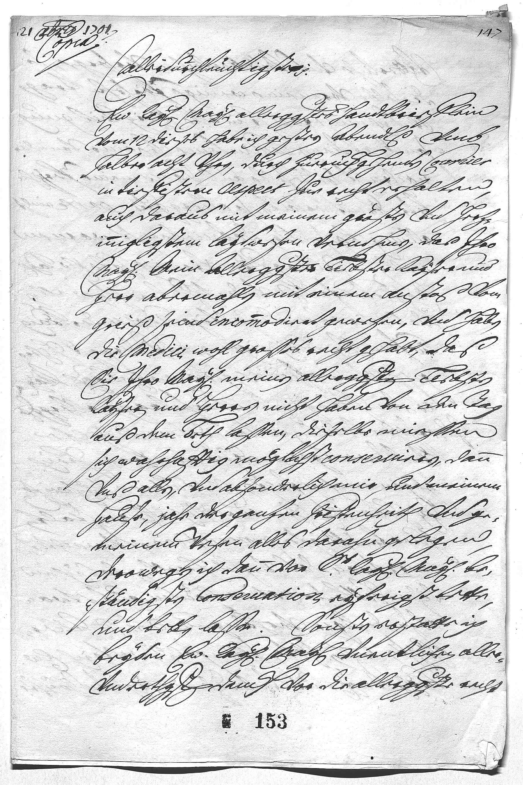 Die Ärzte haben gut daran getan, den Kaiser im Bett zu behalten, an seiner Erhaltung ist alles gelegen. – Dankt für die fürsorgliche Übersendung des Schreibens aus Paris; hat selbst eine ähnliche Warnung vom König in Preußen (vor einer Entführung durch französische Attentäter) erhalten und trifft alle Sicherheitsvorkehrungen. Sollte Gott es aber wegen seiner Sünden dazu kommen lassen, bittet er, seinetwegen nicht im Geringsten vom Interesse des Erzhauses und des deutschen Vaterlands abzuweichen. Wird gerne sein Leben opfern und dann hoffentlich bald im Himmel über die Macht der Franzosen lachen können. – Hat gehört, dass der Kaiser dem römischen König (Joseph I.) zum Nikolaustag einen diamantbesetzten Kommandostecken geschenkt hat und hofft, dass dies ein Zeichen ist, dass der König das Kommando am Oberrhein übernimmt. – Sendet Weihnachts- und Neujahrsglückwünsche. – JWs Gemahlin dankt für die Grüße. – Bittet, ihn wissen zu lassen, wer an dem Komplott gegen ihn beteiligt ist.