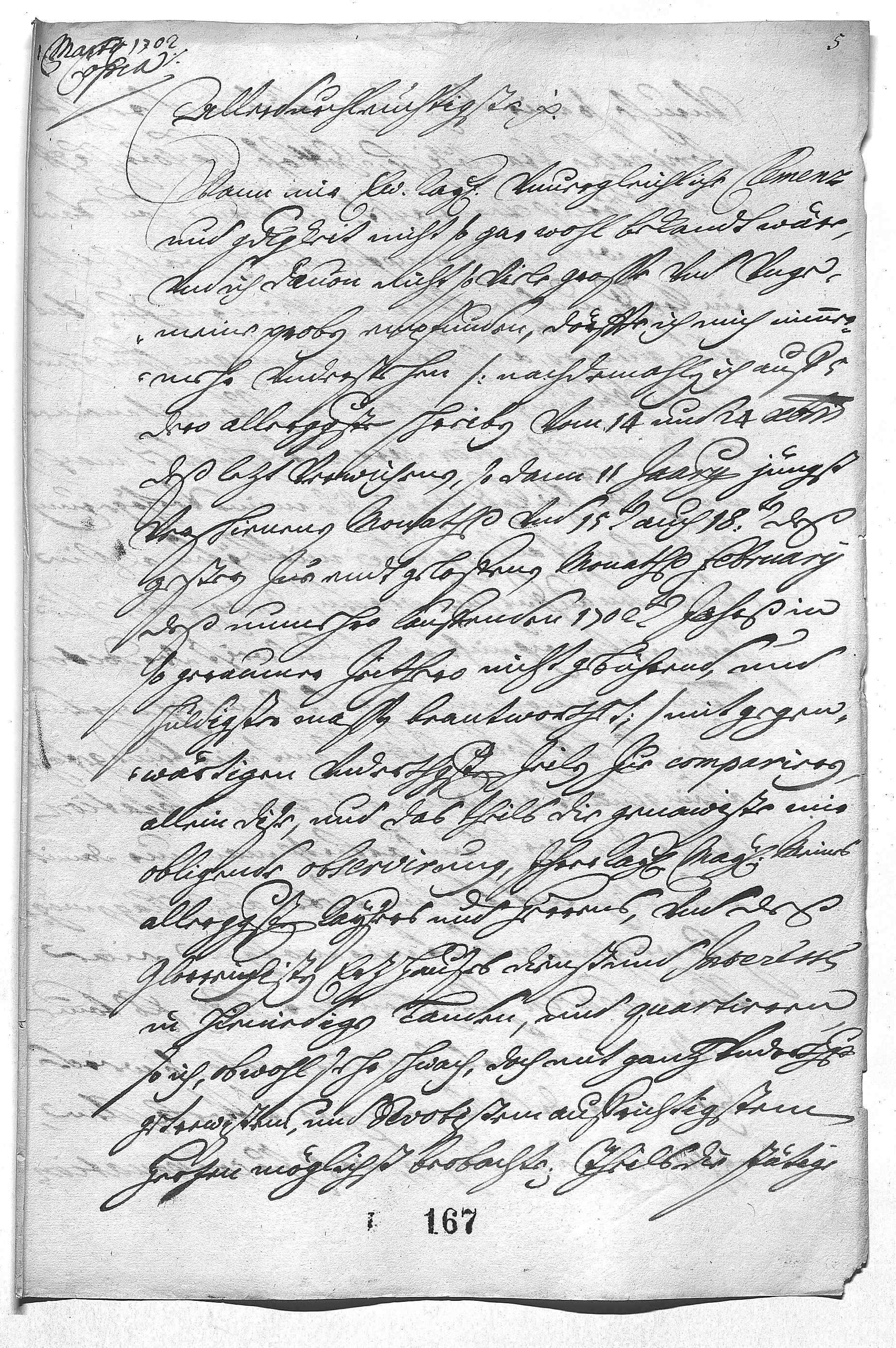 Entschuldigt sich, EMTs letzte Schreiben so lange nicht beantwortet zu haben; seine Pflichten im Dienst des Kaisers, die Unruhe wegen der bösen französischen Nachbarschaft und seine angeschlagene Gesundheit haben ihn gehindert. – Bezieht sich wegen des Feldzugs des römischen Königs (Joseph I.) auf seinen Hofkanzler Wiser, der ja nun schon in Wien ist. – Bittet neuerlich um Unterstützung eines Vergleichs zwischen dem Prinzen Gian Gastone (von Medici) und seiner Gemahlin. – Empfiehlt den Grafen Kinsky als neuen böhmischen Oberstkanzler . – Schämt sich für die Undankbarkeit des (Hoch- und) Deutschmeisters (Bruder Franz Ludwig). – Die meisten Truppen Kurkölns würden wohl zum Kaiser übergehen, wenn man sie in einem öffentlichen Patent dazu auffordern würde. – Arbeitet in Münster mit allen Kräften für den Bischof von Osnabrück , sieht aber keine Aussicht auf Erfolg, denn die Westfalen sind „betrügerischer“ als die Welschen, Franzosen und Spanier zusammen. Der (Hoch- und) Deutschmeister verdient jedenfalls keine Unterstützung. – Alle Bemühung für das Fräulein von Starhemberg war leider umsonst. – Es wäre besser, wenn JWs Schwester in Polen (Hedwig Elisabeth) weder nach Neuburg noch nach Wien reist. – Der Plan einer Klostergründung in Höchstädt hat gottlob nun ein Ende und die Mutter (Elisabeth Amalie) ist zufrieden. – Dankt für EMTs Zusage wegen der Tochter des Ansalone.