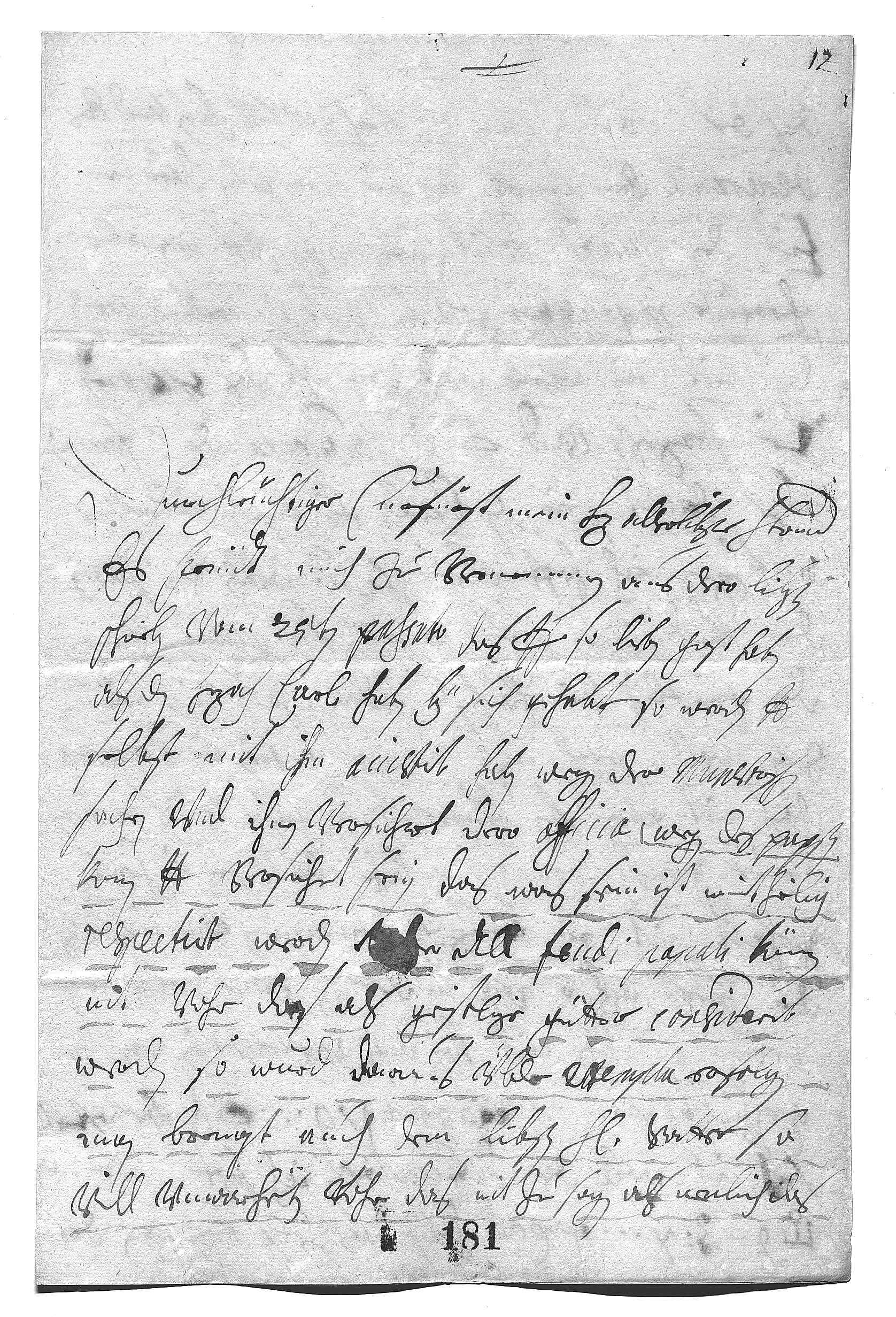0001Durchleüchtiger Curfürst, mein herz allerlibster herr bruder0002Es freüdt mich zu vernemmen aus dero libsten 0003schreiben vom 25ten passato, das dero Liebden so lieben gast haben 0004als den Herzoch Carl haben bey sich gehabt. So werden dero Liebden 0005selbst mit ihm aiustirt haben wegen der munstrischen 0006sachen vnd ihnen versichert dero officia. Wegen des Papsten 0007konnen dero Liebden versichert sein, das, was sein ist, wirt heilig 0008respectirt werden, aber all feudi papali können 0009nit vohr das als geistlige gütter considerirt 0010werden, so wurd daraus üble exempla erfolgen. 0011Man brengt auch dem libsten heiligen Vatter so 0012vill vnwarheiten vohr, das nit zu sagen, als nemlich das