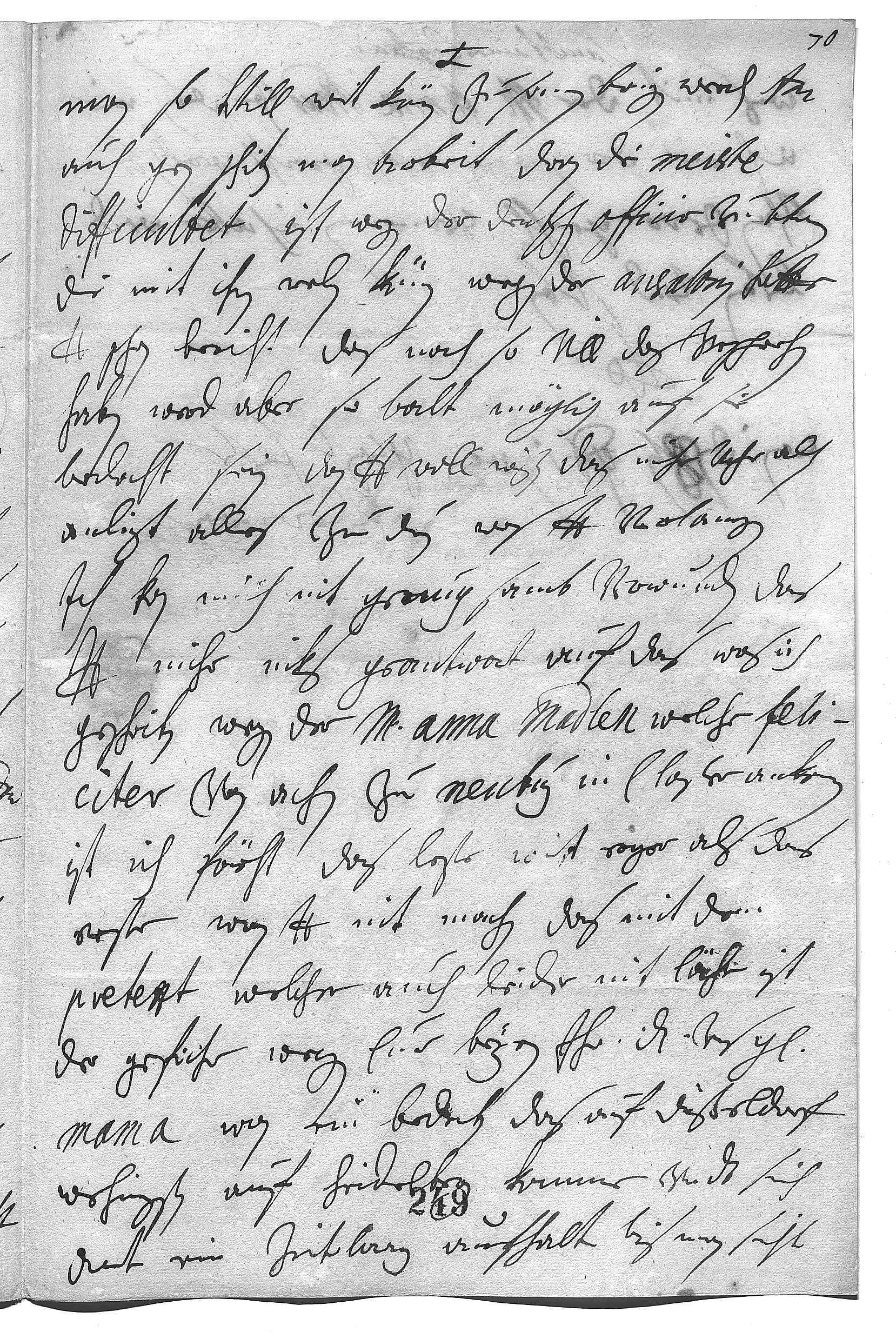 0035man so vill wirt könen zusamen bringen, werden ihr Mayestät 0036auch gern schiken, man arbeit dran, die meiste 0037difficultet ist wegen der deutschen officir, welche zu bekomen, 0038die mit ihnen reden könen. Wegen der Ansaloni hatte 0039dero Liebden schon bericht, das noch so vill das versprechen 0040haben, werd aber so balt möglich auf sie 0041bedacht sein, dan dero Liebden woll wißen, das mihr vohr als 0042anligt alles zu dun, was dero Liebden verlangen. 0043Ich kan mich nit genug samb verwundern, das 0044dero Liebden mihr niks geantwort auf das, was ich 0045geschriben wegen der Mutter Anna Madlen, welche feli- 0046citer von Achen zu Neuburg in closter ankommen 0047ist. Ich förcht, das lezte wirt erger als das 0048erste, wan dero Liebden nit machen, das mit dem 0049pretext, welcher auch leider nit lähr ist, 0050der gefahr wegen Cur Beyren ihr Durchlaucht, vnser geliebste 0051mama, wan ein bedenken, das auf Düßeldorf, 0052wehnigsten auf Heidelberg komme vndt sich 0053dort ein zeitlang aufhalt, bis man sicht