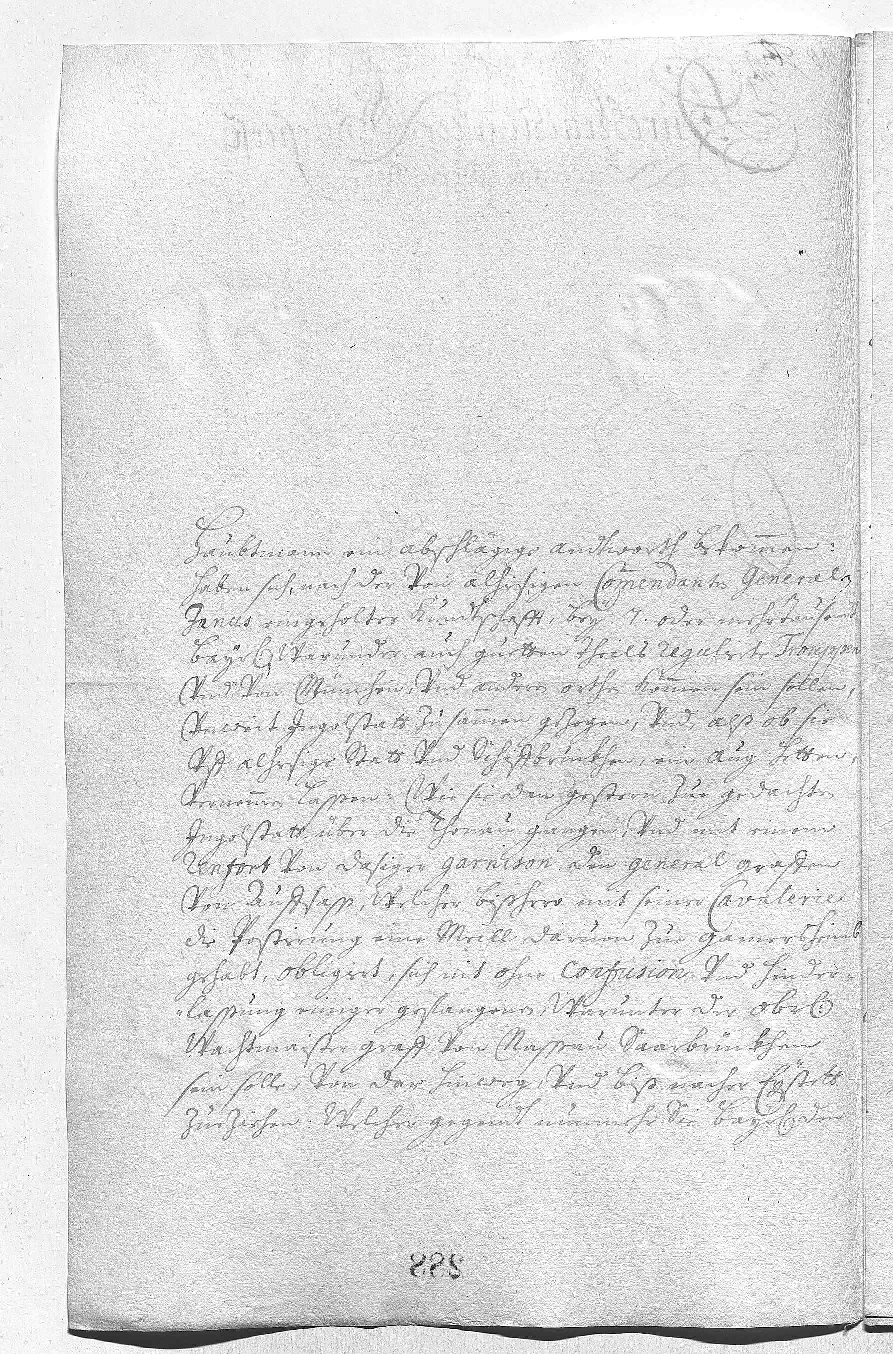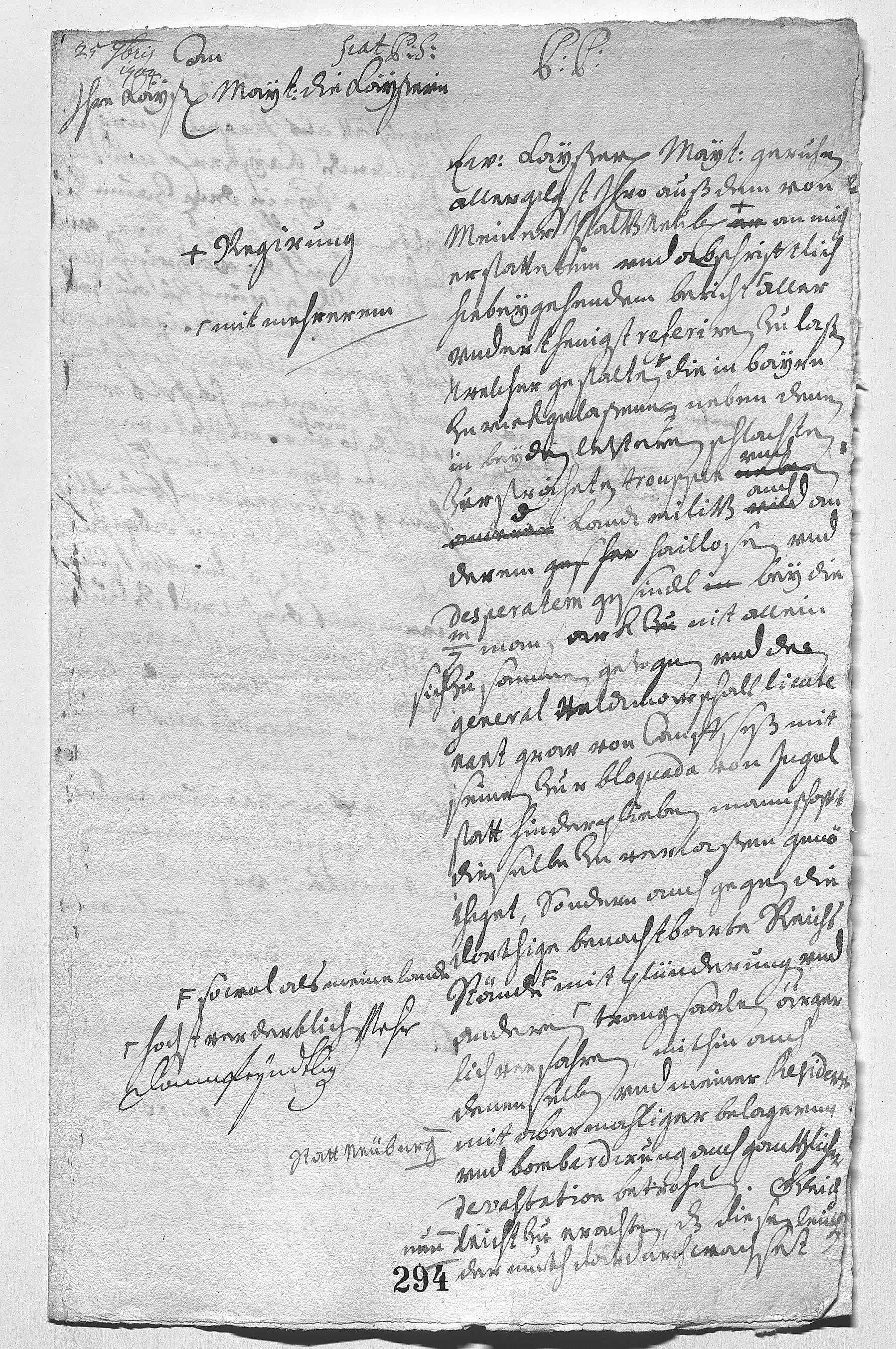 Wie EMT dem beiliegenden Bericht der pfalz-neuburgischen Regierung entnehmen kann, bedrohen an die 7.000 Mann in Bayern zurückgelassene und zerstreute Truppen JWs Residenzstadt Neuburg und plündern in benachbarten Reichsterritorien. Bittet um rasche Erklärung der Reichsacht gegen Kurbayern und um Verstärkung der Truppen des Generals Herbeville .