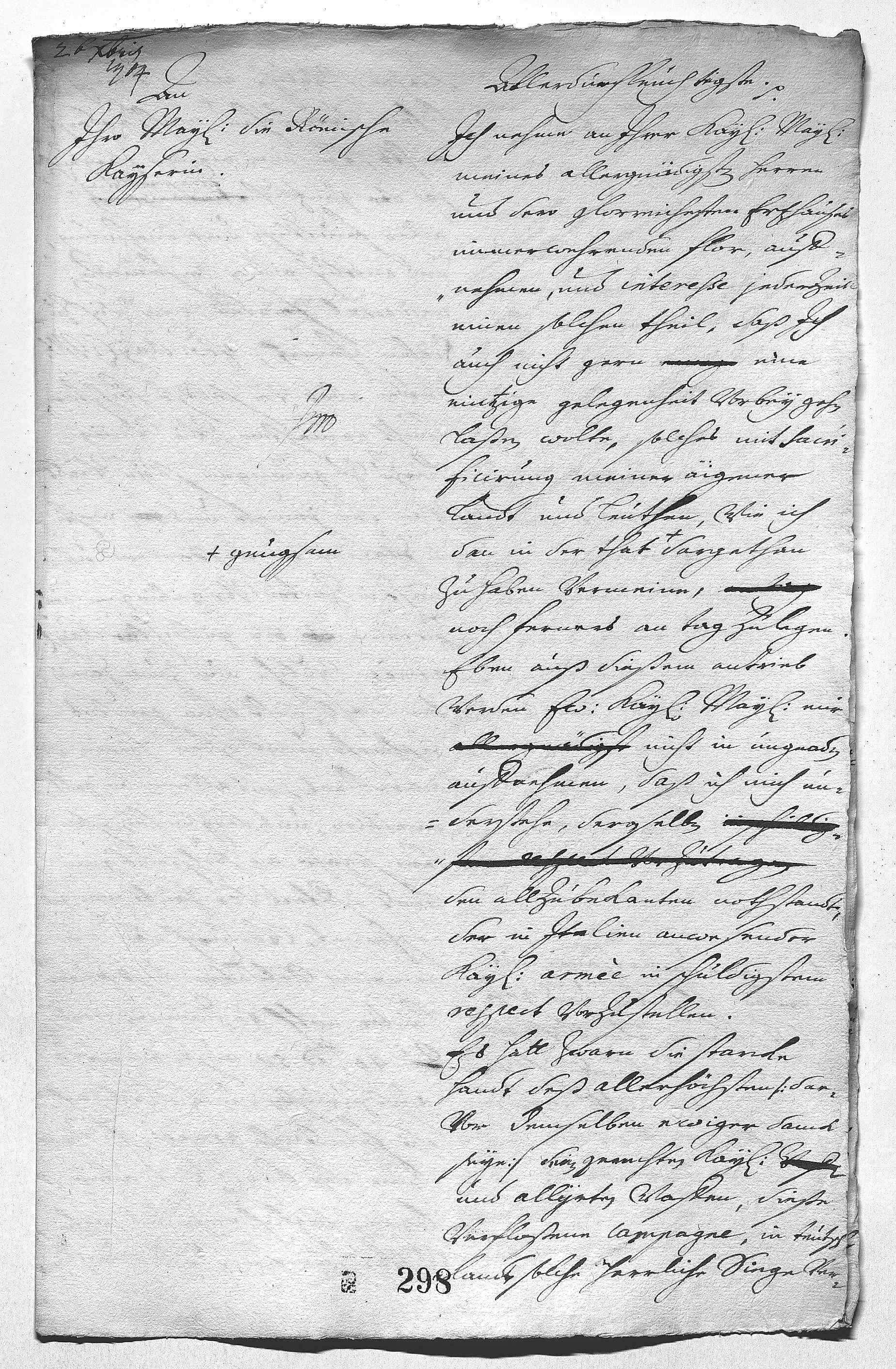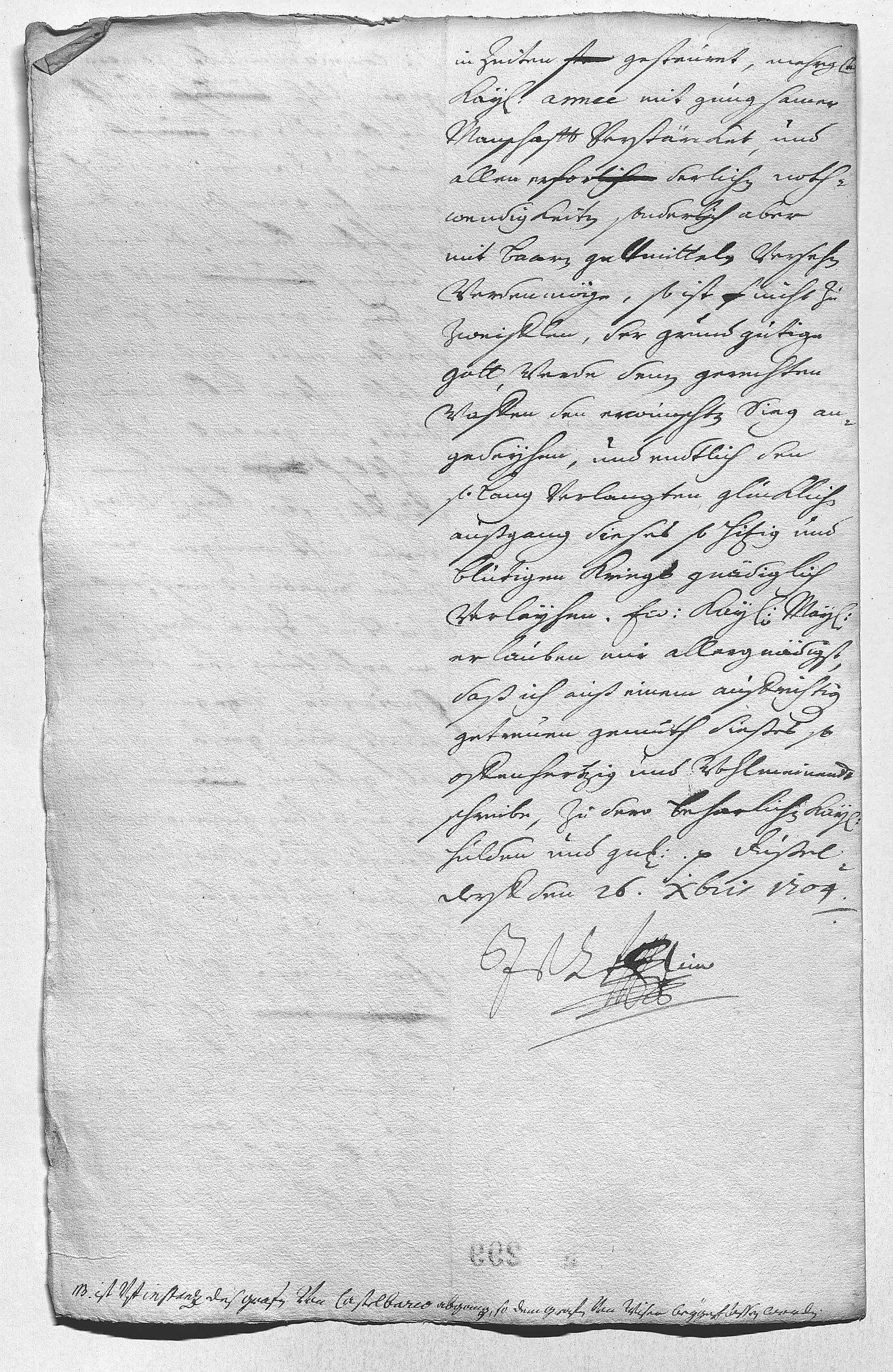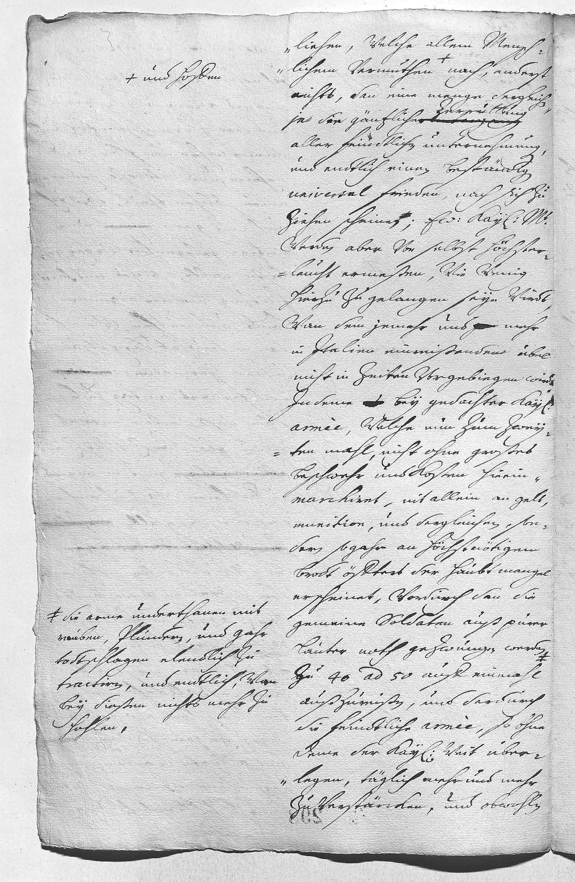 Wegen seines großen Eifers für das Erzhaus wird ihm EMT nicht verübeln, dass er auf den Notstand der kaiserlichen Armee in Italien hinweist. Zwar lassen die jüngsten Siege auf einen beständigen Universalfrieden hoffen. Wird aber der Mangel an Geld, Munition und Brot nicht schleunigst behoben, so werden immer mehr Soldaten aus Not zum Feind überlaufen und es ist auch ein Aufstand zu befürchten. Bittet dringend um Verstärkung und bessere Versorgung der Truppen.