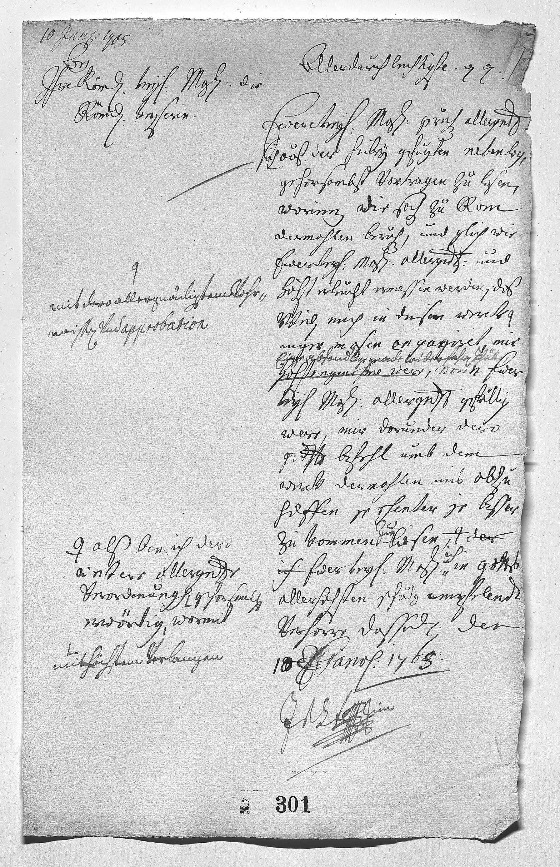 Aus der Beilage kann EMT sehen, wie die Sachen in Rom stehen; bittet um Befehl für sein weiteres Vorgehen.