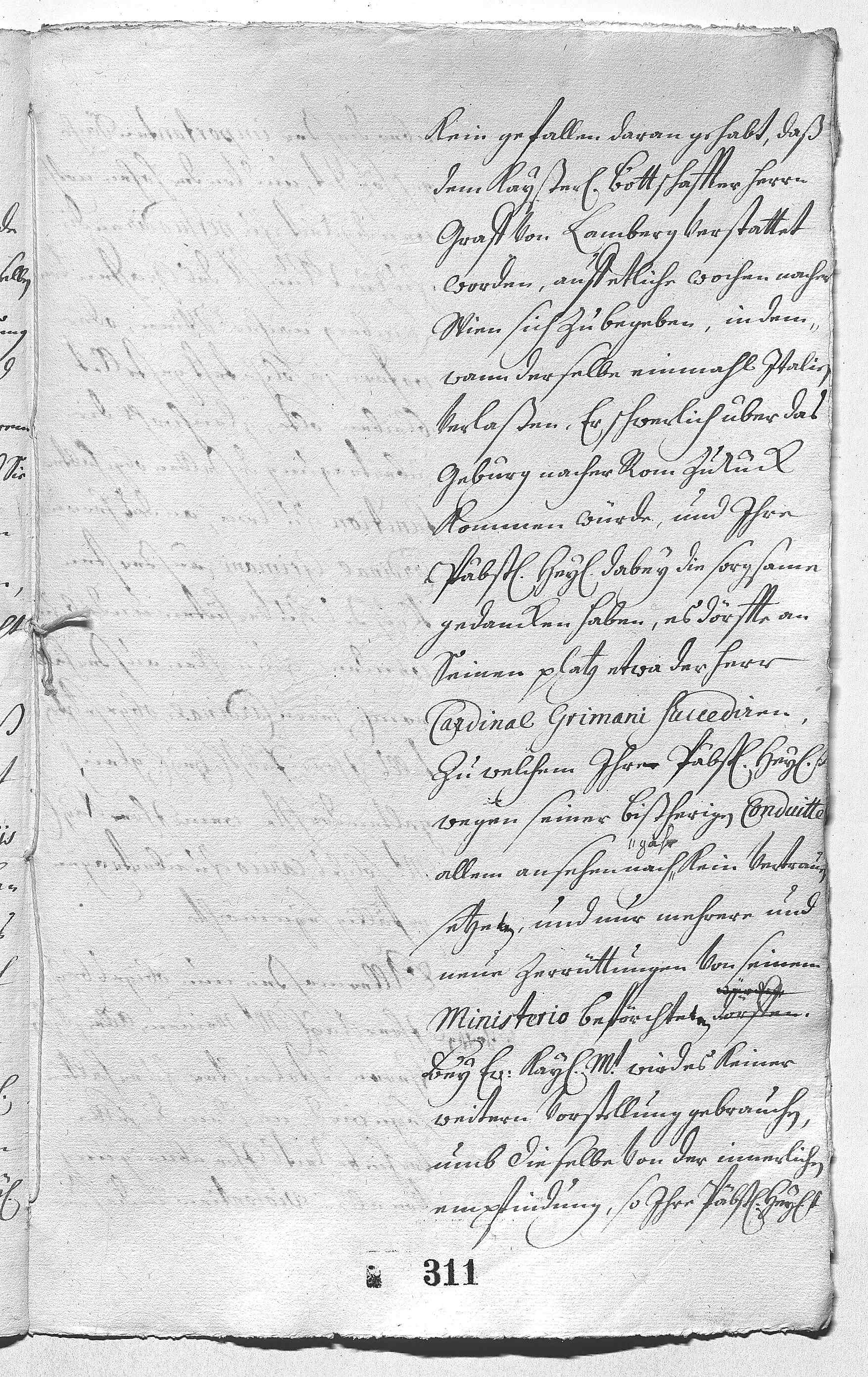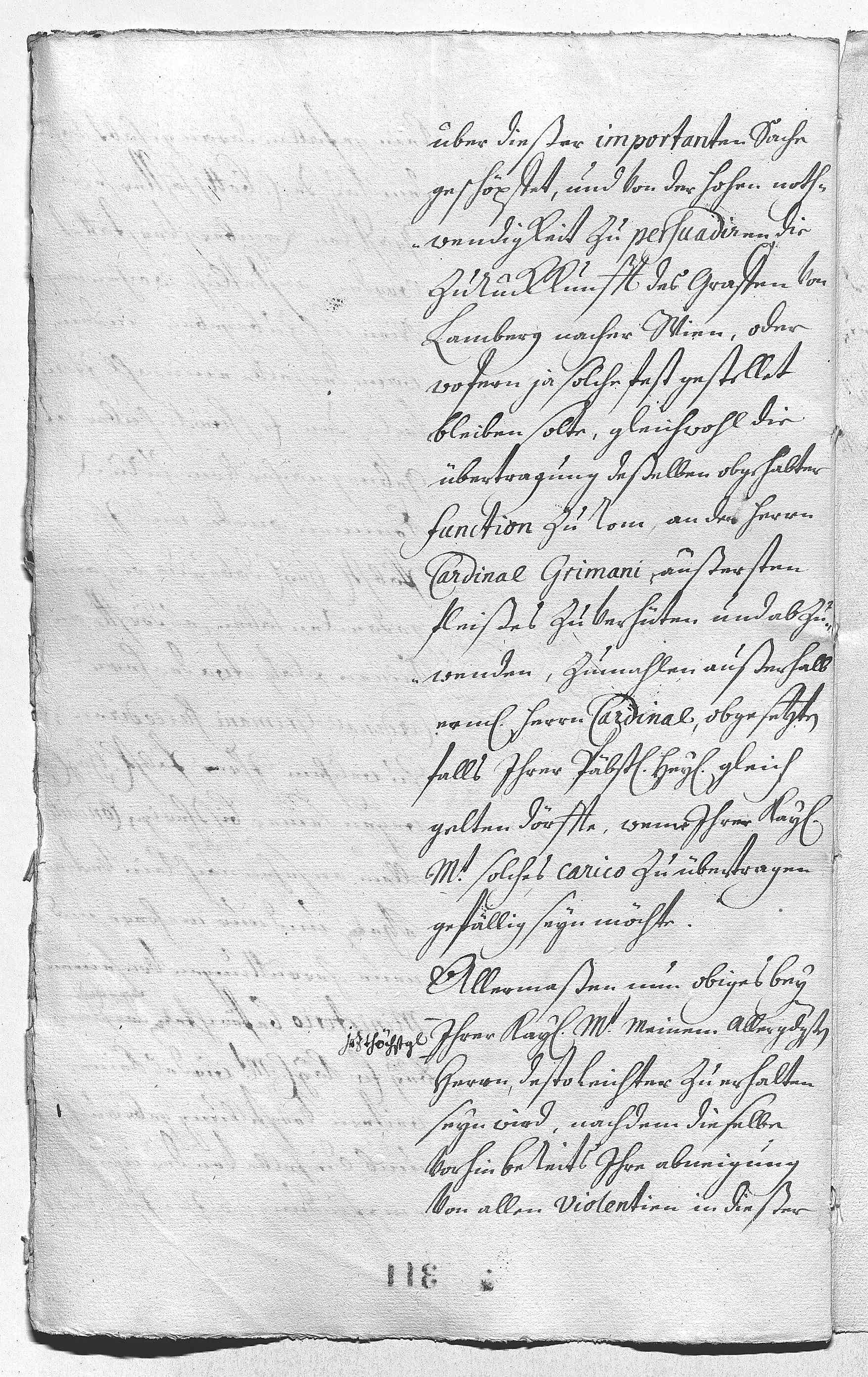 Hat dieser Tage von vertrauter Hand aus Rom erfahren, dass der Papst JWs Bemühungen um die Wiederherstellung der vorherigen Harmonie mit dem Kaiserhof schätzt. Seine Heiligkeit befürchtet aber, dass der Graf Lamberg als kaiserlicher Botschafter in Rom vom Kardinal Grimani, zu dem er kein Vertrauen hat, abgelöst werden könnte. JW ist sicher, dass EMT sich beim Kaiser (Joseph I.) dafür einsetzen wird, dies zu verhindern.