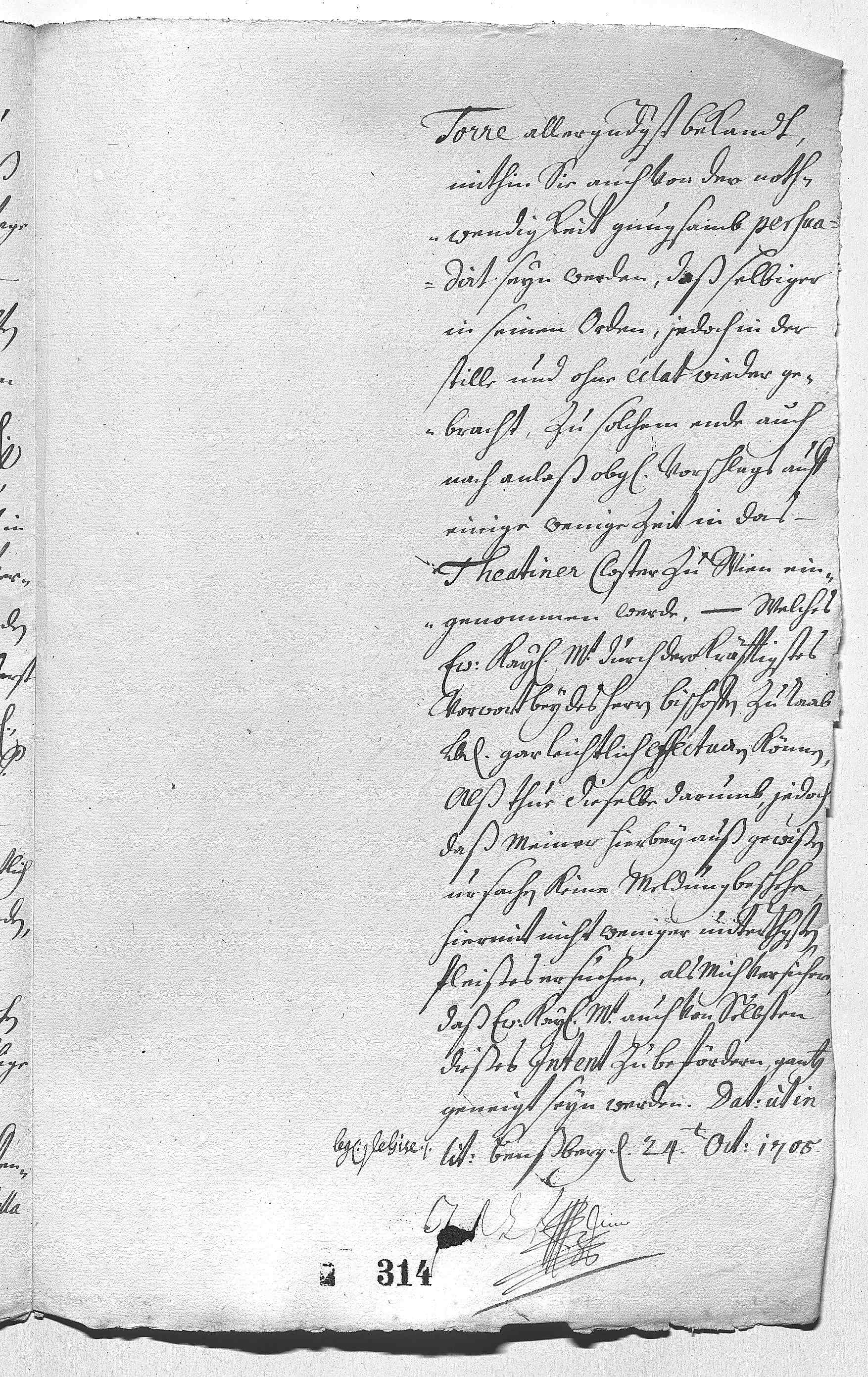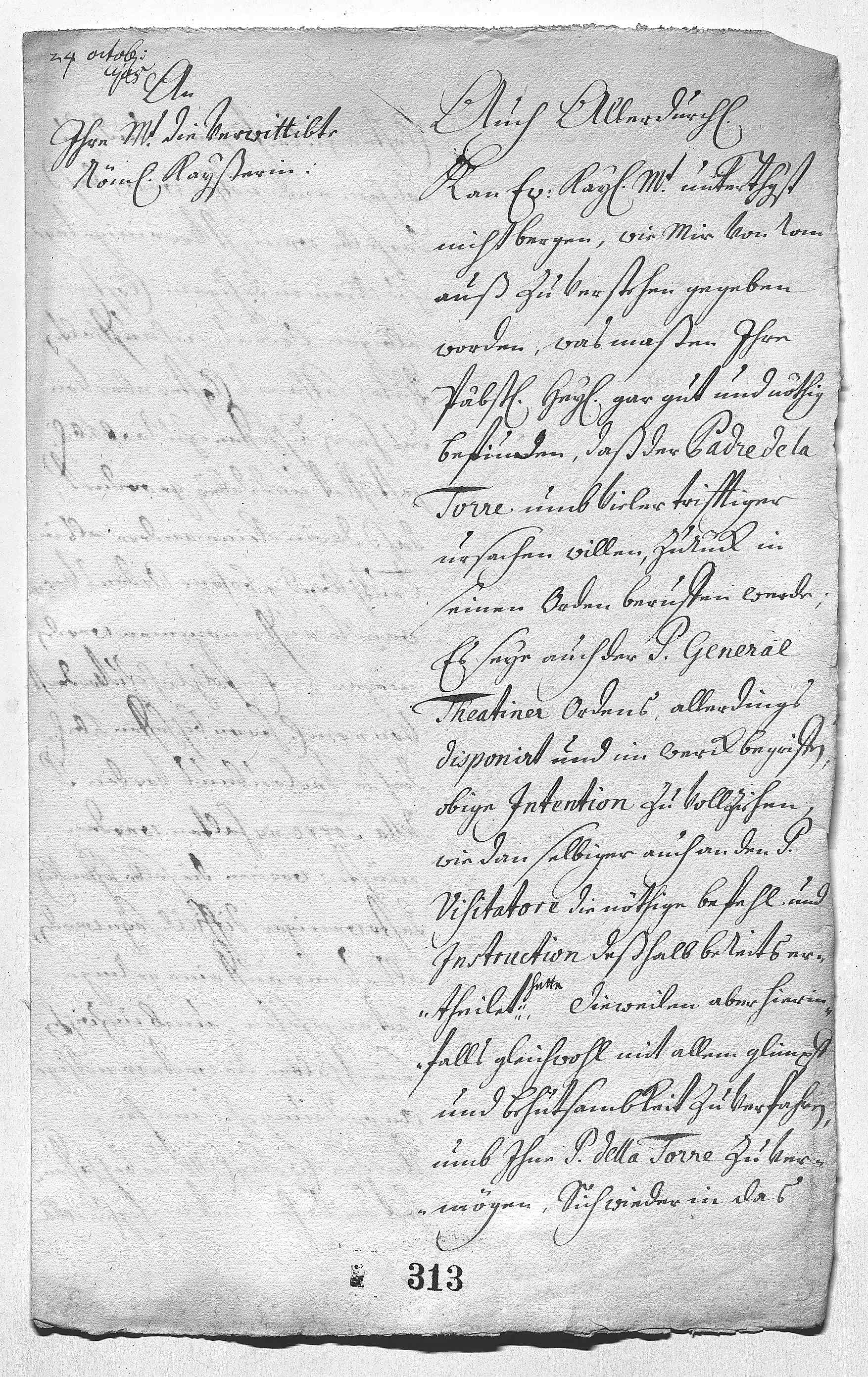 JW wurde von Rom aus zu verstehen gegeben, dass der Papst eine Abberufung des Pater della Torre in seinen Orden wünsche; der Pater General der Theatiner hat diesem auch bereits den entsprechenden Befehl erteilt. Dazu ist aber die Erlaubnis des Bischofs von Raab nötig, dass der Pater ohne Eklat für einige Tage in das Wiener Theatinerkloster gebracht wird; EMT wird diese Erlaubnis leicht erwirken können.