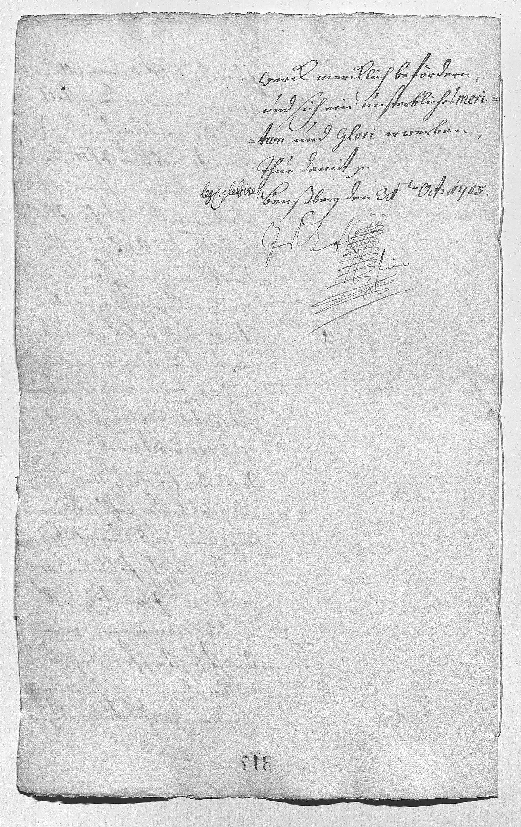 Johann Wilhelm von Pfalz-Neuburg an Eleonora Magdalena von Pfalz-Neuburg, Bensberg am 1705.10.31