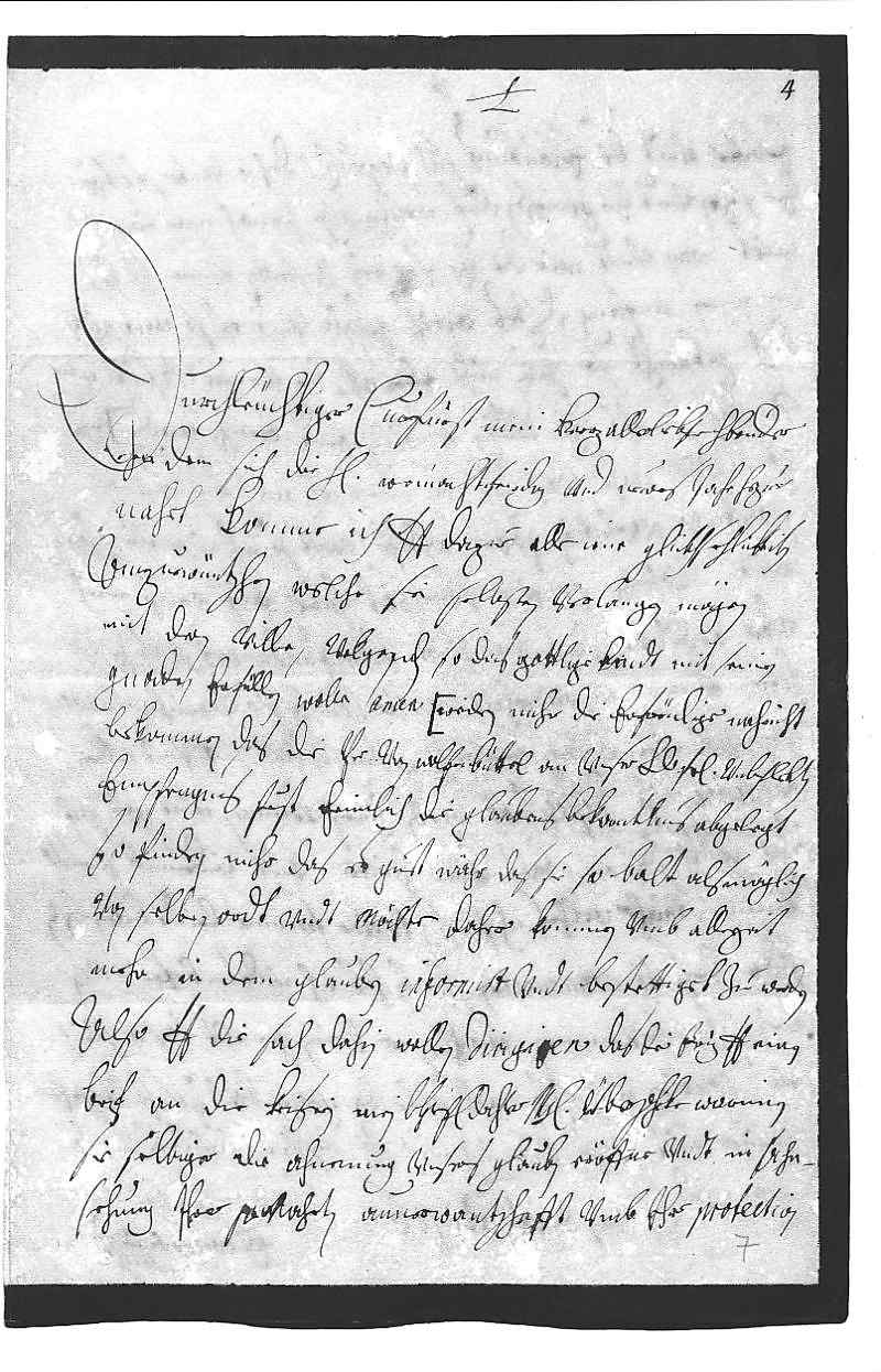 0001Durchleüchtiger Curfürst, mein herzallerliebster herr bruder 0002In dem sich die heiligen weinachtsfeirdag vnd newes iahr herzue 0003nahet, komme ich, dero Liebden dazue alle iene glüksehlickeiten 0004anzuewüntschen, welche sie selbsten verlangen mögen, 0005mit deren villen volgenden, so das gottlige kindt mit seinen 0006gnaden erfüllen wolle, amen. Weilen mihr die erfreülige nachricht 0007bekommen, das die Prinzessin von Wolfenbüttel an vnser lieben fraw vnbeflekten 0008empfengnus fest heimlich die glaubens bekantnus abgelegt, 0009so finden mihr, das es guet währ, das sie so balt als möglich 0010von selben ordt aufbrechen solle vndt möchte dahero kommen, vmb allezeit 0011mehr in dem glauben informirt vndt bestettiget zu werden. 0012Also dero Liebden die sach dahin wollen dirigiren, das die Prinzessin dero Liebden einen 0013brif an die Keiserin, mein libste fraw dochter Mayestät, überschike, warinnen 0014sie selbiger die ahnemung vnsers glauben eröffne vndt in ahn- 0015sehung ihrer naheten anuerwantschafft vmb ihre protection