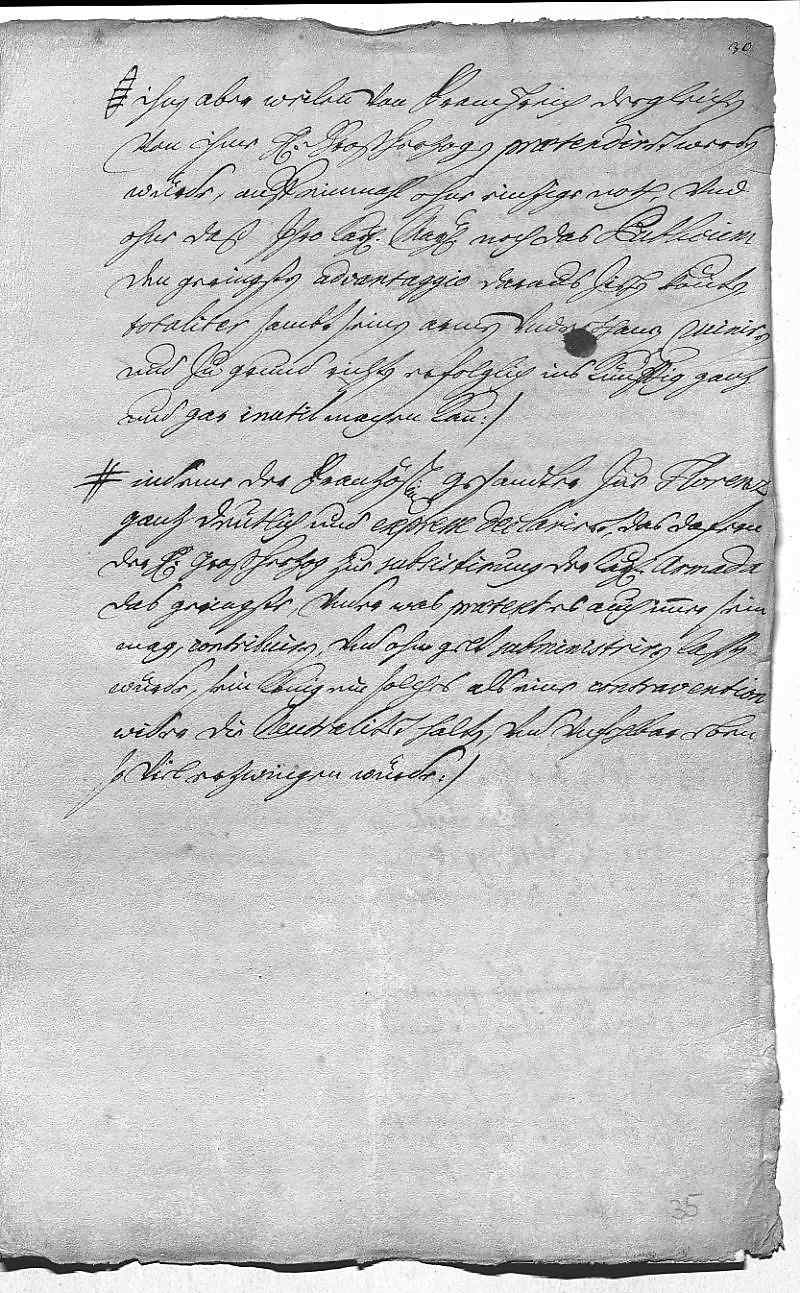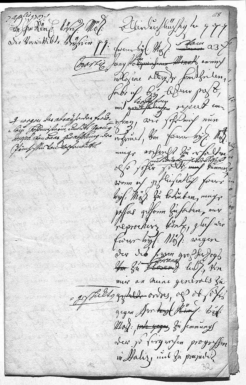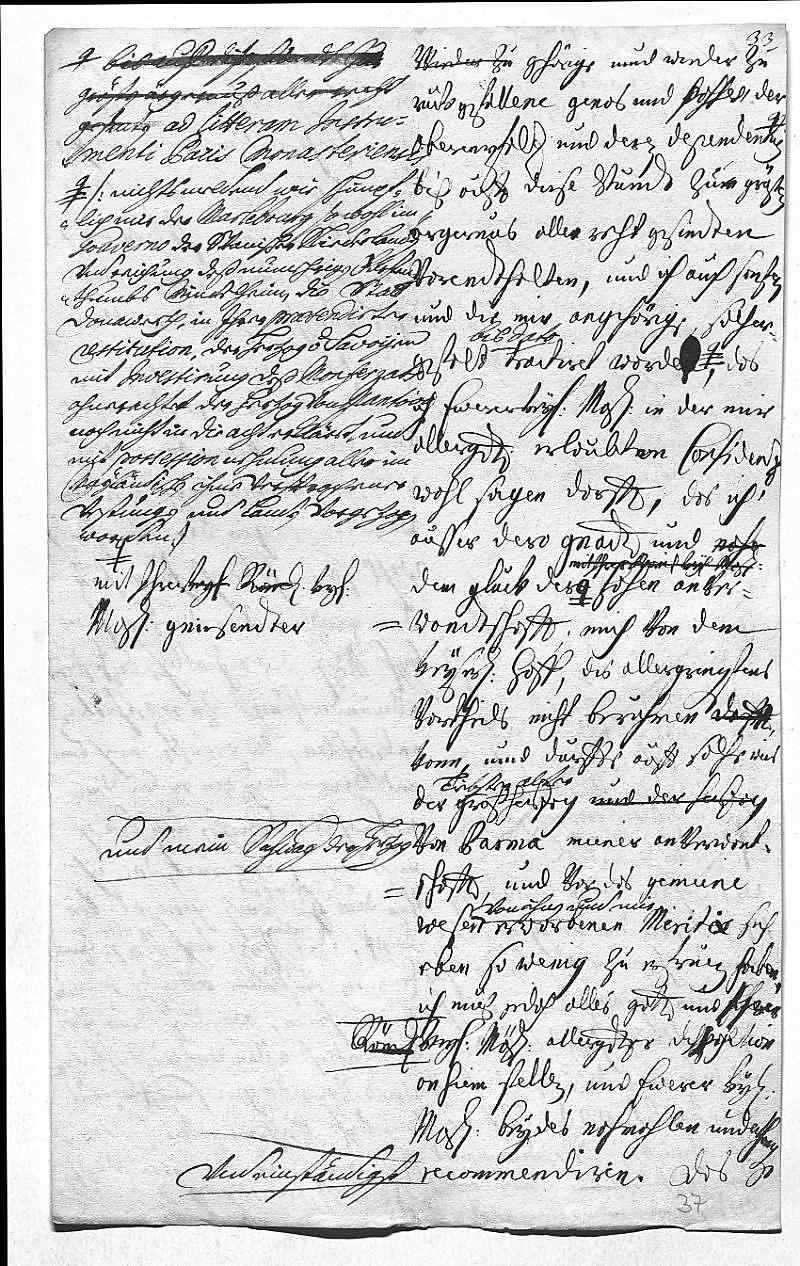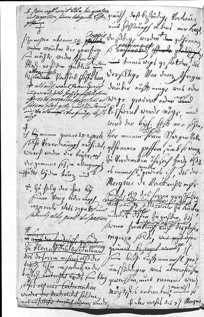 Freut sich über die Abreise (um die Braut Elisabeth Christine von Braunschweig-Wolfenbüttel abzuholen) von EMTs Fräuleinhofmeisterin und des Grafen Joseph von Paar . – Dankt für EMTs Offenheit. Versichert, dass er seinen Generälen die Order wegen des Großherzogs von Toskana keineswegs geschickt hat, damit dieser sich der kaiserlichen Macht widersetzt, sondern nur für den Fall, dass das kaiserliche Kriegskommissariat ihn eigenmächtiger und unbilliger Weise mit Kontributionen belasten wollte, wie JW es leider selbst schon erlebt hat. Rechtmäßig darf nicht mehr als die Hälfte der Erträge eines Lehens eingehoben werden; Frankreich macht bereits gefährliche Angebote. Weder der Kaiser noch das „Publikum“ haben einen Vorteil davon, wenn der Großherzog ruiniert wird; der französische Gesandte in Florenz hat angekündigt, dass Frankreich jeden Beitrag zum Unterhalt der kaiserlichen Armee als Verletzung der Neutralität ansehen und einen gleich hohen Beitrag vom Großherzog erzwingen wird. – Es schmerzt JW, dass so wenig Rücksicht auf ihn, der Land und Leute dem Gemeinwesen und dem Erzhaus geopfert hat, und seine Angehörigen genommen wird. Es ist dem ganzen Reich, ja ganz Europa bekannt, dass JW auch in gefährlichster Lage alle Angebote Frankreichs ausgeschlagen und dem Kaiser jederzeit Truppen, Länder und Geld zur Verfügung gestellt hat. Trotzdem haben Übelgesinnte es dahin gebracht, dass er weder die zugesagte Entschädigung aus dem Erzstift Köln noch die zugesagten Subsidien und Kontributionen oder Brot und Hafer für seine Truppen erhalten hat und auch bis zur Stunde noch nicht im Besitz der Oberpfalz ist. – Freut sich, dass die Prinzessin von Wolfenbüttel bereits auf der Reise nach Wien sein wird. – Hat mit Freude die kaiserliche Entscheidung wegen der Wahl in Münster erfahren. – Kardinal Grimani ist in seinem Bericht, den JW beiliegend zurücksendet, von der Wahrheit abgewichen, denn der Fede ist unschuldig. – Sendet beiliegend eine Kopie des Vorschlags, den der König in Preußen ihm gemacht hat. Hat nur geantwortet, dass die Situation sich durch die Entscheidung des Kaisers geändert hat.