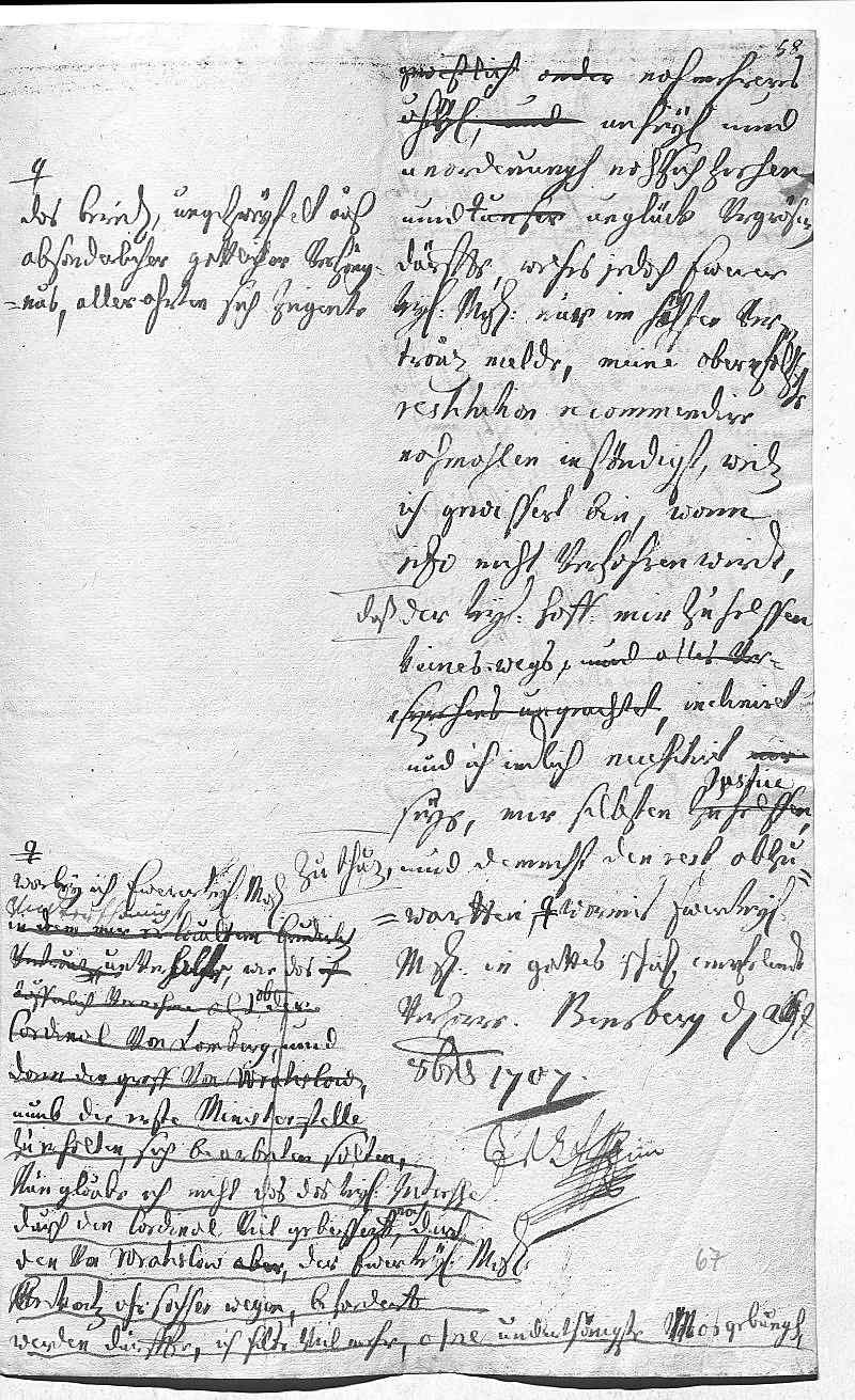 Johann Wilhelm von Pfalz-Neuburg an Eleonora Magdalena von Pfalz-Neuburg, Bensberg am 1707.10.29