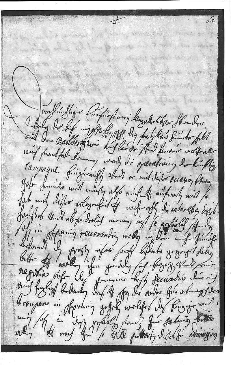 0001Durchleüchtiger Curfürst, mein herzallerlibster herr bruder 0002Weilen der Keiser, mein geliebster sohn Mayestät, den Fratislaw hinunter schikt, 0003mit dem Marlberog wie auch Cur Mains vnd Hanouer, welche alle 0004auf Frankfort kommen werden, die operationen der könftigen 0005campagne einzuerichten, vndt er mit dißer occasion etwan 0006gahr hinunter wirt müßen, also auch dero Liebden aufwarten wirt, so 0007hab mit dißer gelegenheit dero Liebden nachmahlen die interessen dißes 0008haußes vndt absonderlich meinen izt so gefärlich stehnden 0009sohn in Schpanien reccomendiren wollen, in dem mihr zuuohr 0010bekandt den großen eifer, so dero Liebden bisdato gezeiget haben. 0011Bitte, dero Liebden wollen ihm genädig sich erzeigen vndt seine 0012negotia vohr das gemeine beste secundiren. Due mich 0013auch herzligst bedanken, das dero Liebden schon die ordre zue abmarsch dero 0014troupen in Schpanien gegeben, welches das einzige mitel, 0015mein sohn in disen gefärlichen standt zue saluiren. Bitte 0016allein dero Liebden noch zu so vill guttaten dises zu adiungiren,