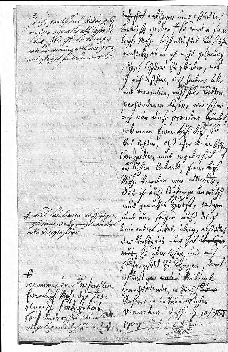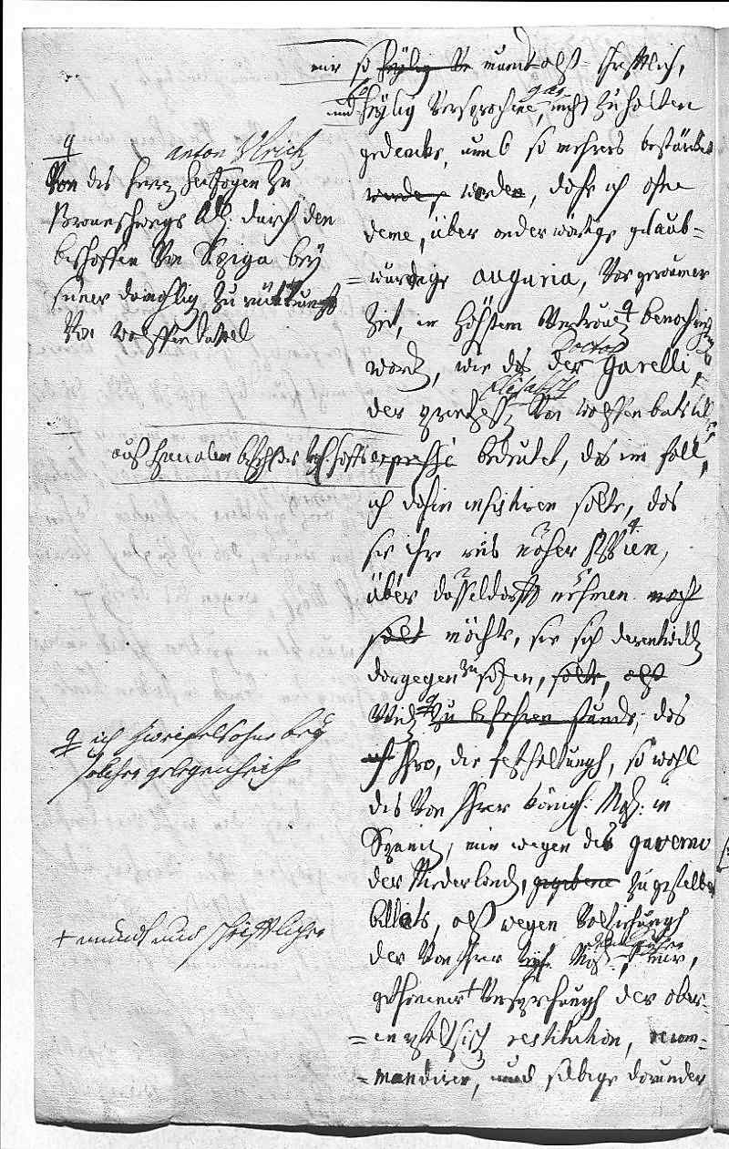 Der auf EMTs Befehl durch den Reichsvizekanzler dem Grafen Wiser überbrachte (kaiserliche) Entschluss bestürzt JW sehr und bestätigt seine Befürchtung, dass man am Kaiserhof das gegebene Versprechen nicht einzuhalten gedenkt. Ohnehin hat ihm bereits der Herzog von Wolfenbüttel vertraulich über den Bischof von Spiga bei dessen Rückreise aus Wolfenbüttel mitgeteilt, dass der Doktor Garelli Prinzessin Elisabeth (Christine) von Wolfenbüttel geraten hat, bei ihrer Reise nach Wien Düsseldorf nicht zu besuchen, damit JW sie nicht wegen der ihm vom spanischen König (Karl) versprochenen niederländischen Statthalterschaft und der vom Kaiser versprochenen Restitution der Oberpfalz bedrängen könne. Hat trotzdem bisher nicht glauben wollen, dass ihm nur leere Versprechen gegeben wurden, und seine Truppen nach Katalonien geschickt. Jetzt fordert man vom ihm, die Zustimmung Schwedens einzuholen, die doch implizit schon vorhanden ist. Muss alles dem Schicksal überlassen und zusehen, dass er nicht weiter lächerlich gemacht wird. – Empfiehlt nochmals die toskanischen Kontributionen.