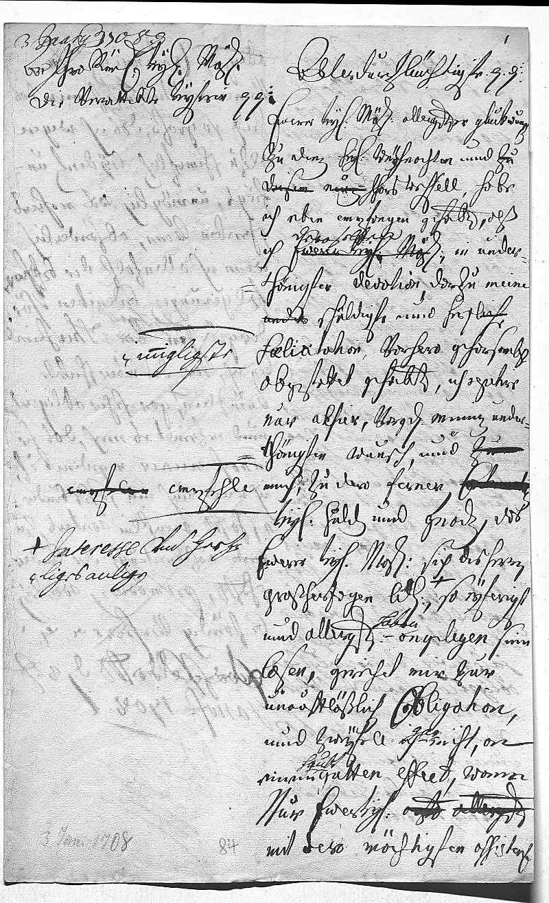 Johann Wilhelm von Pfalz-Neuburg an Eleonora Magdalena von Pfalz-Neuburg, Düsseldorf am 1708.01.03