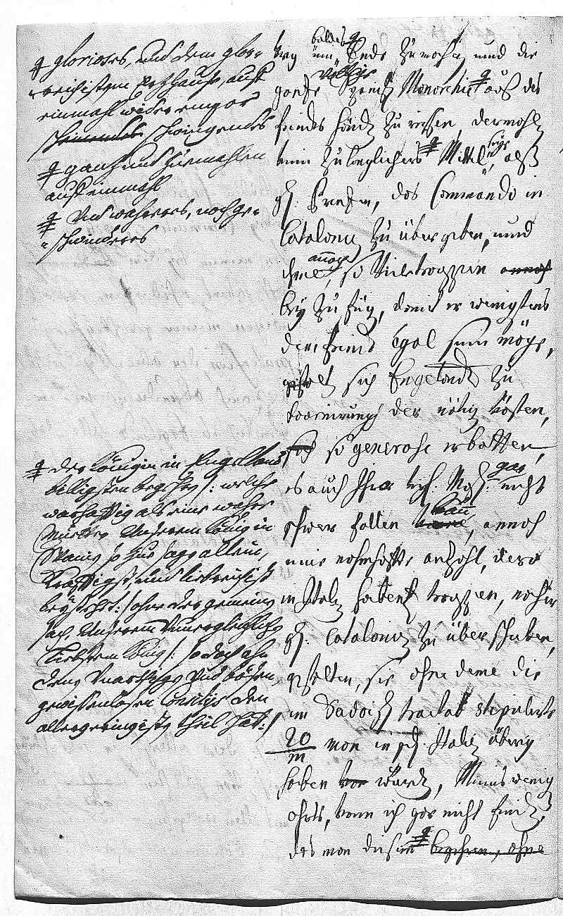 Sendet beiliegend den Bericht seines Residenten in England zur Restitution der Oberpfalz und zur englischen Forderung, den Prinzen Eugen nach Katalonien zu schicken. Um dem Krieg bald ein glorioses Ende zu machen und die ganze (spanische) Monarchie zu gewinnen, gibt es kein besseres Mittel, als dem Prinzen das Kommando in Katalonien zu geben und zumindest gleich viele Truppen, wie der Feind hat; England hat angeboten, die Kosten zu tragen. Sieht nicht, wie man den Wunsch der englischen Königin abschlagen könnte ohne größten Schaden oder gar die Auflösung der Großen Allianz.