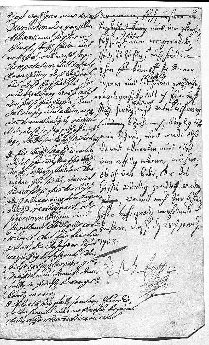 Johann Wilhelm von Pfalz-Neuburg an Eleonora Magdalena von Pfalz-Neuburg, Düsseldorf am 1708.01.28