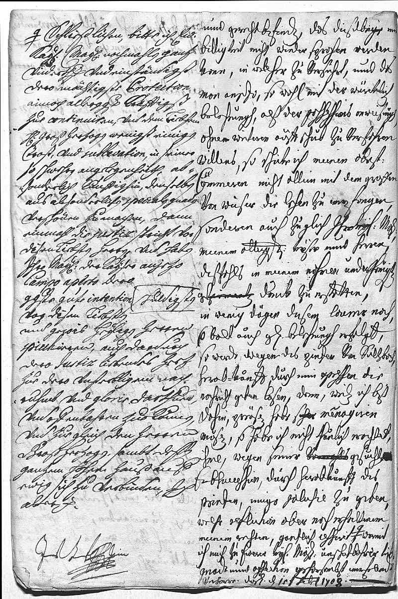 Hat durch den vorgestern zurückgekommenen Kurier EMTs Schreiben erhalten mit der höchst erfreulichen Nachricht, dass der Kaiser ihn endlich mit der alten pfälzischen Kurwürde und den oberpfälzischen Landen investiert hat und sie ihm auch gleich einräumt. Dankt EMT für ihre Vermittlung. Hat, um die gestellten Bedingungen zu erfüllen, bereits dem Grafen Wiser Befehl wegen der Fortsetzung des Vertrags über 4.000 Mann erteilt und seinen Truppen die verlangte Order zugesandt. Kann nicht in die Forderung einwilligen, Kaiserswerth abzutreten , wird sich aber einem Gerichtspruch oder einer Mediation unterwerfen. – Zweifelt nicht, dass man die Belehnung und Possessionsanweisung nicht weiter aufschieben wird, und hat daher seinen Obristkämmerer mit dem Grafen Wiser geschickt, um die Lehen zu empfangen und dem Kaiser zu danken. – Sobald die Belehnung erfolgt ist, kann der Prinz von Sulzbach kommen, was bisher aus Rücksicht auf Preußen nicht möglich war. – Bittet nochmals um EMTs Protektion für den Großherzog (von Toskana).