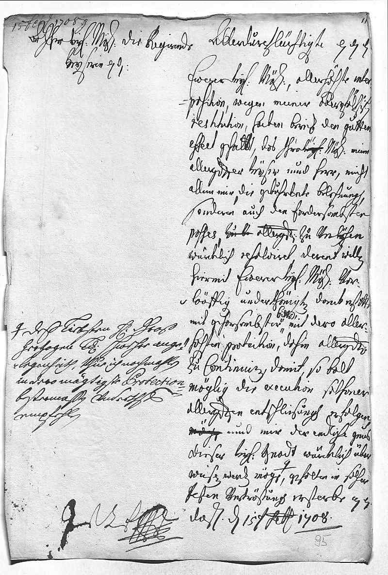 Johann Wilhelm von Pfalz-Neuburg an Eleonora Magdalena von Pfalz-Neuburg, Düsseldorf am 1708.02.15