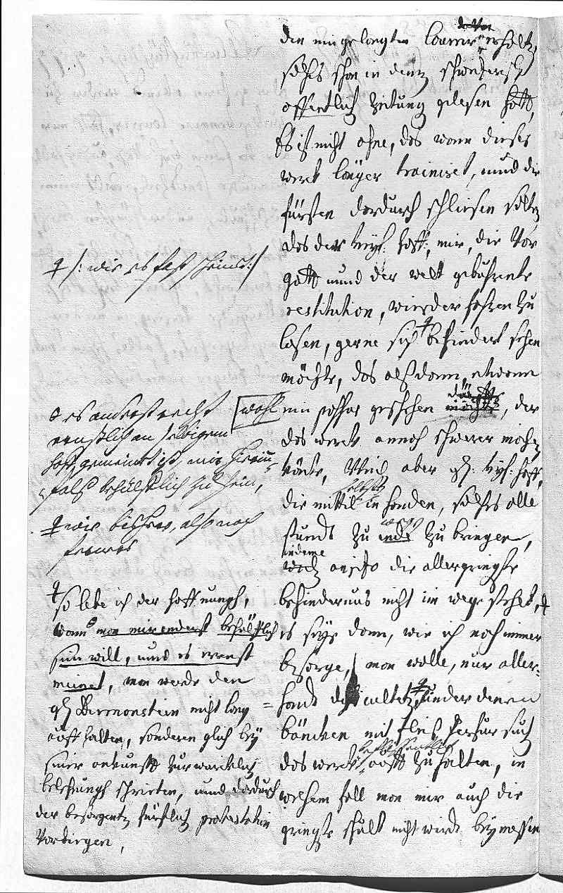 Bedauert, dass er den Diemantstein nicht zurückrufen kann, weil er schon über die Hälfte des Weges ist und nicht mehr einzuholen sein wird. Die Angelegenheit (die Übergabe der Oberpfalz) ist aber ohnehin nicht so geheim, hat bereits in den schweizerischen öffentlichen Zeitungen darüber gelesen. Hofft, man werde gleich bei Ankunft des Diemantstein zur Belehnung schreiten; wird bis dahin an der Aufrichtigkeit des Kaiserhofs in dieser Sache zweifeln. – Bedauert, EMT bei ihren ohnehin übervielen Beschäftigungen so bemühen zu müssen. Wenn sie ihn sehen könnte, wenn ihm nach all seinen treuen Diensten so grobe Brocken von den Ministern des jetzigen kaiserlichen Hofs vorgeworfen werden, hätte sie herzliches Mitleid mit ihm.
