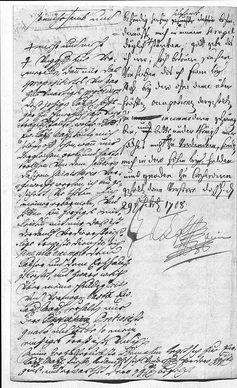 Johann Wilhelm von Pfalz-Neuburg an Eleonora Magdalena von Pfalz-Neuburg, Düsseldorf am 1708.02.29