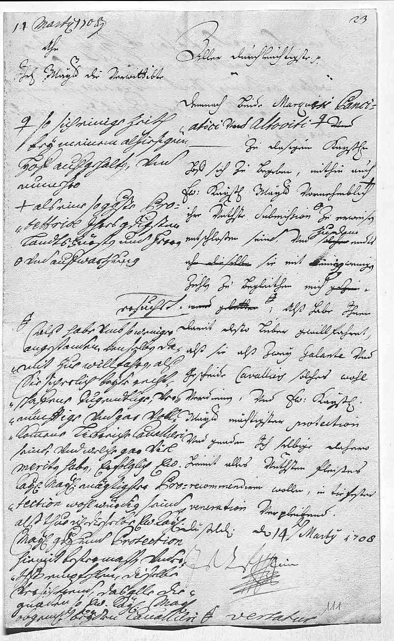 Johann Wilhelm von Pfalz-Neuburg an Eleonora Magdalena von Pfalz-Neuburg, Düsseldorf am 1708.03.14