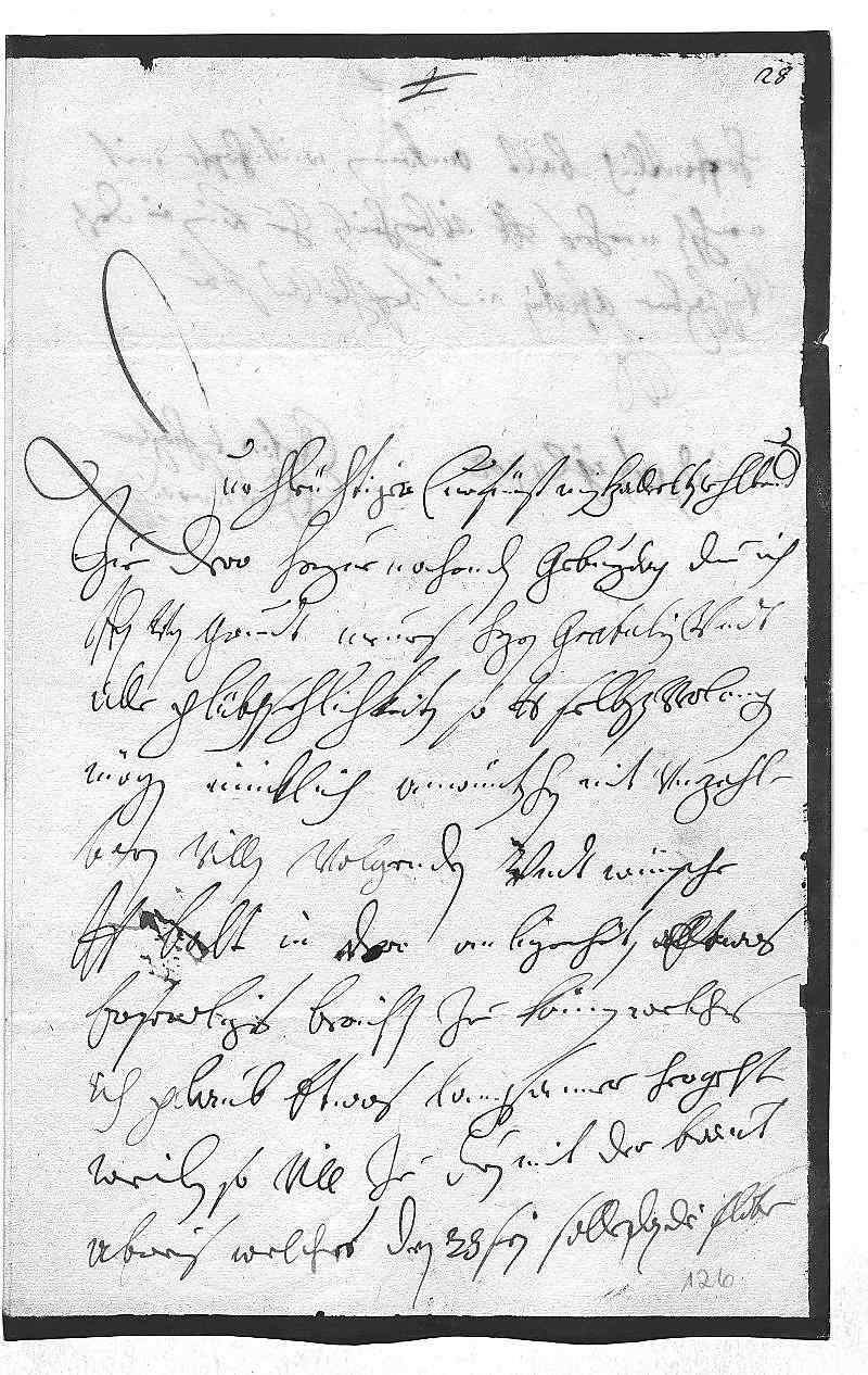 0001Durchleüchtiger Curfürst, mein herzallerlibster herr bruder 0002Zue dero herzue nahenden geburzdag due ich 0003ihnen von grundt meines herzen gratuliren vndt 0004alle glükhsehlichkeiten, so dero Liebden selbsten verlangen 0005mögen, inniklich anwüntschen mit vnzahl- 0006baren villen volgenden. Vndt wünsche 0007dero Liebden balt in dero anlegenheiten etwas 0008erfrewligs berichten zu können, welchs 0009ich glaub, etwas langsamer hergeht, 0010weilen so vill zu duen mit der braut 0011abreis, welches den 23 sein sollen, dan die flote