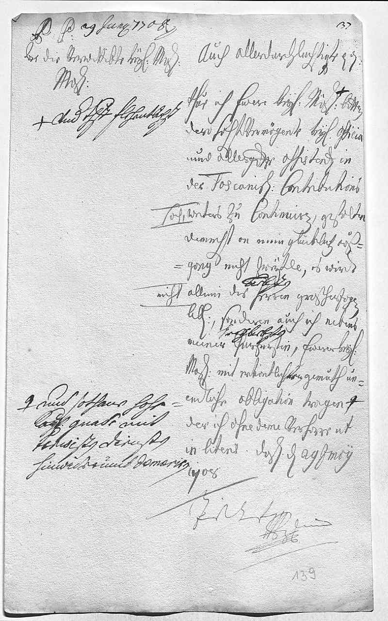 Bittet EMT, ihre Unterstützung wegen der toskanischen Kontributionen fortzusetzen; zweifelt nicht an einem baldigen glücklichen Ausgang.
