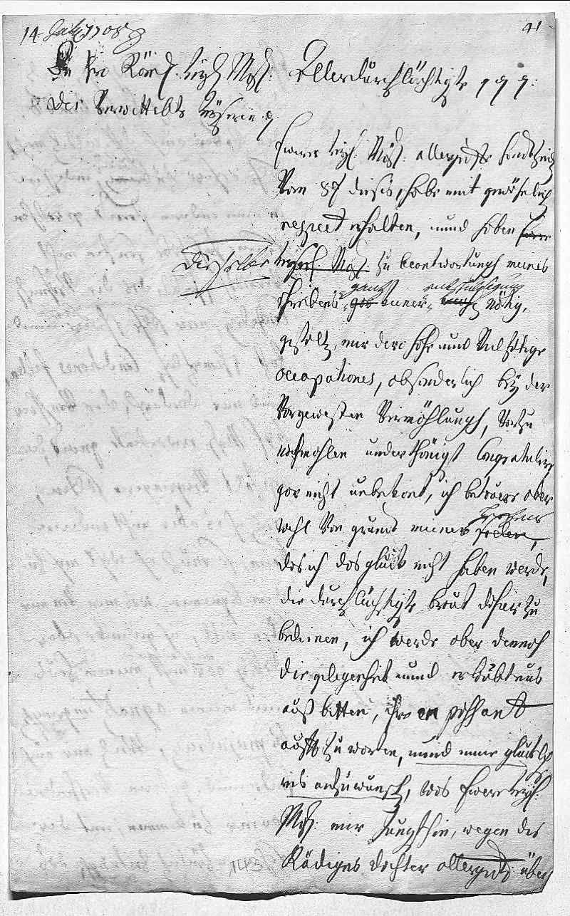 EMT muss sich nicht wegen der (verzögerten) Beantwortung von JWs Briefen entschuldigen. – Gratuliert nochmals zur Hochzeit (von Erzherzogin Maria Anna mit König Johann V. von Portugal). Möchte der Braut unterwegs aufwarten. – Muss die harten und fast schimpflichen Bedingungen der Böhmischen Kanzlei annehmen, wird sich aber auf nichts einlassen, was seinem Haus präjudizierlich sein könnte. – Gratuliert zum Sieg bei Oudenaarde . – Empfiehlt die Kontribution des Großherzogs von Toskana und die Reise seiner abgeschmackten Schwägerin in EMTs Aufmerksamkeit.