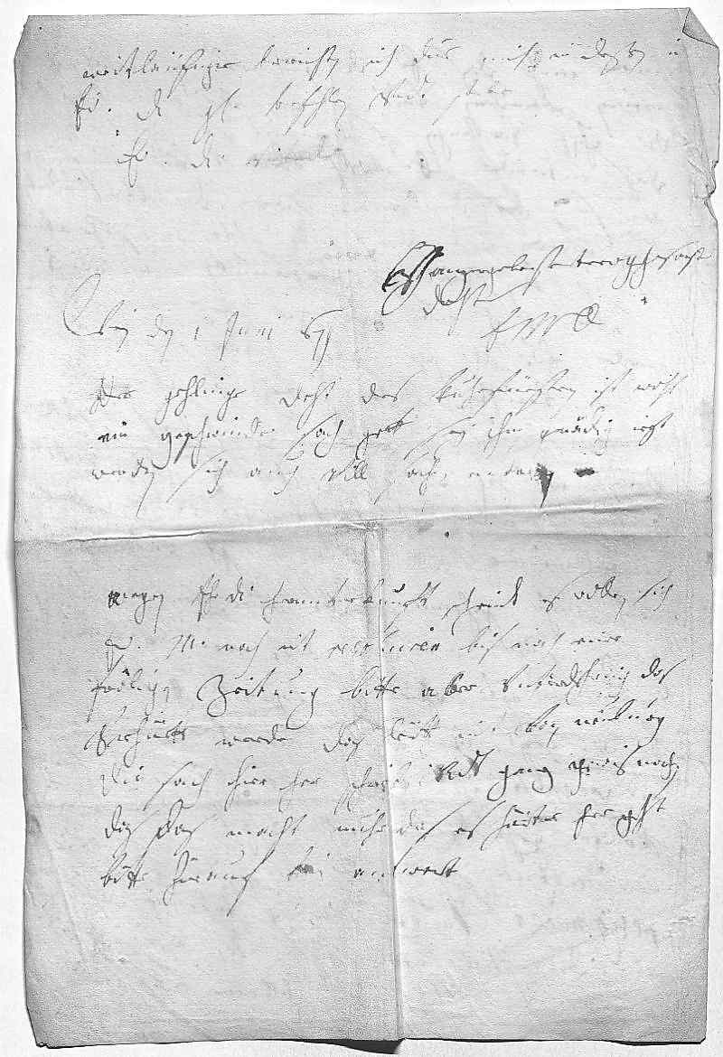 0106weitlaüfiger berichten. Ich due mich in deßen in 0107ewer Durchlaucht gnade befehlen vndt sterbe 0108ewer Durchlaucht vnterdehnigste 0109ganzergebenste trewgehorsamste 0110dochter 0111EMT 0112Wien den 1 juni 16790113Der gehlinge doht des Kuhrfürsten ist wohl 0114ein geschwinde sach, gott sey ihm gnädig. Iezt 0115werden sich auch vill sachen entren. 0116Wegen ihr Durchlaucht herunterkunft, scheindt es, wollen sich 0117ihr Mayestät noch nit resoluiren bis nach einer 0118fröligen zeitung. Bitte aber vnterdehnig das 0119verhüett werde, das leütt nit von Neuburg 0120die sach hier her schreiben vndt ganz gewis machen, 0121das das macht nuhr, das es härter her geht. 0122Bitte hierauf kein antwort.