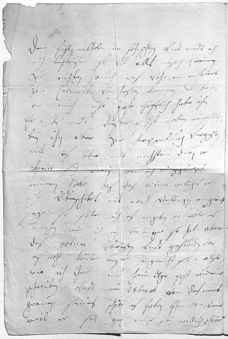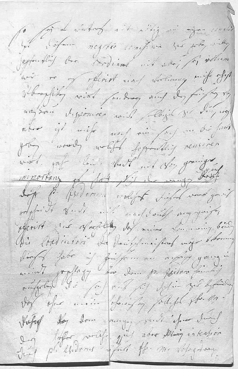 0018dem Fürst Wilhelm im fohrschlag, vndt werdt ich 0019mich befleisen, so vill alls möglich hierinnen 0020zue richten, auch was vohr ein antwort 0021vom Cardinal von Heßen kommen zu berichten. Der brief 0022an mich ist gahr höfflich, habe ihn 0023ewer Durchlaucht mit dießer post wollen einschließen, 0024bin ihn aber zue Laxenburg vergeßen, 0025will es aber mit nechstem duen. Er 0026offerirt sich darin, wan ich einzigs zue 0027erineren hätte, das das votum, welliches er 0028mihr überschiket, nit nach verlangen eingericht 0029seye, so solle ich es angeben, er wolle es 0030machen wie ich es verlange. So hab aber 0031das votum überleßen vndt gefunden, das 0032es wohl könte beßer eingericht sein. Also 0033wir ich ihme mid heüntiger post widerumb 0034schreiben vndt ein extract von des Mark- 0035grauen seines schiken. Es haben ihr Mayestät vermeint, 0036weil er sich gegen mihr so willich oferirt,