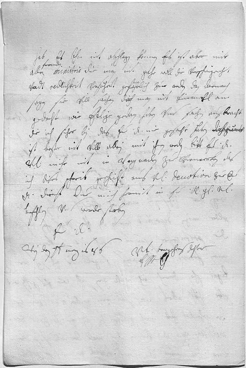 0001Durchleüchtiger Cuhrfürst, herz allerliebster herr vatter 0002Aus ewer Durchlaucht gnädigem schreiben vom 22ten passato hab ich 0003mit freüden vernommen, das sich ewer Durchlaucht in guttem 0004wohlstandt befindten. Mit Brandenburg erwarten wir, was vor 0005antwort kommen wirt. Erst ist ein anvoyeé hier 0006ankommen, der wegen der völker weiters traktiren 0007wirt, gott geb alles zue seiner er. Wegen des 0008andren werden ewer Durchlaucht alles vom Stratman vernemmen. 0009Wegen der Cuhrfürstin werd ich fleisich dreiben, das die 0010gelder mögen depositirt werden, dan ihr Mayestät haben es schon befohlen. 0011Die portugeßer seint noch nit ankommen. 0012Man schreibt auch aus Engelandt, es sey der 0013Ligni schon durch. Ich will gern sehn, wie es gehten wirt, 0014gott schikh alles nach seinem willen vnd zum besten. 0015Der Hohenloh hatt mich gebetten, ihn bey ewer Durchlaucht zue reco- 0016mendiren. Ewer Durchlaucht kennen ihm wohl, der will ist gutt, 0017aber das maul ist schwach. Weil er mich so gebetten,