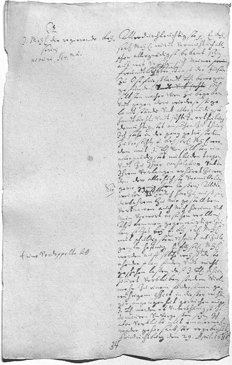 Philipp Wilhelm von Pfalz-Neuburg an Eleonora Magdalena von Pfalz-Neuburg, Friedrichsburg am 1686.04.29