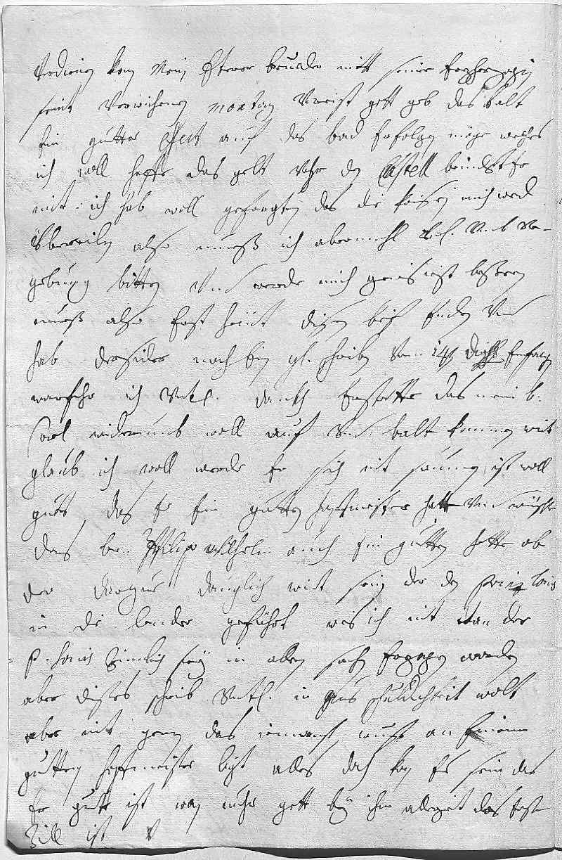 0020verdienen kann. Mein elterer brueder mitt seiner Erzherzogin 0021seint verwichenen montag vereist, gott geb, das balt 0022ein guetter effect auf das bad erfolgen möge, welches 0023ich woll hoffe. Das gelt vohr den Castell bringt er 0024mit. Ich hab woll geforgten, das die Kaiserin mich werd 0025übereilen, also mueß ich abermahl vnterdehnigst vmb ver- 0026gebung bitten vnd werde mich gewis izt beßren. 0027Mueß also erst heüt disen brif enden vnd 0028hab dersider noch ein gnädiges schreiben vom 14ten dis emfangen, 0029warfohr ich vnterdehnigsten dankh erstatte. Das mein bruder 0030Carl widerumb woll auf vnd balt kommen wirt, 0031glaub ich woll, werde er sich nit saumen. Ist woll 0032gutt, das er ein gutten Hoffmeister hatt vnd wünschte, 0033das bruder Pfilipp Wilhelm auch ein gutten hette. Ob 0034der darzue dauglich wirt sein, der den Prinz Louis 0035in die lender geführt, weis ich nit, dan der 0036Prinz Louis zimlich frey in allen sachen erzogen worden, 0037aber dißes schreib vnterdehnigst in aus schuldichkeit, wolt 0038aber nit gern das iemanst wust. An einem 0039gutten hoffmeister ligt alles, doch kan es sein, das 0040er gutt ist, wan nuhr gott bey ihm allezeit das erste 0041zill ist.