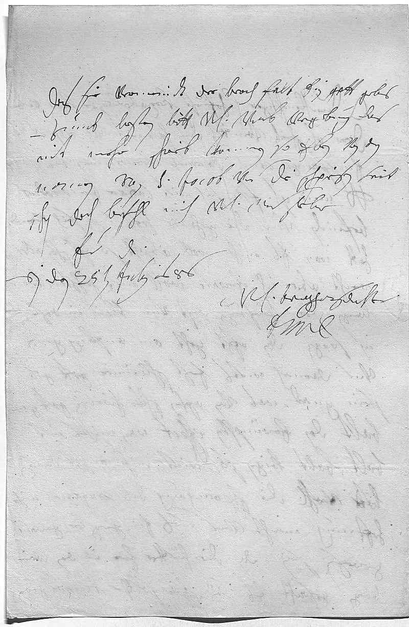 0018das sie vermeindt, der berch falt ein. Gott gebs 0019zumb besten. Bitt vnterdehnigst vmb vergebung, das 0020nit mehr schreib, kommen so eben von den 0021nonnen von Sankt Jacob vnd die schpeisen seint 0022schon dah. Befehl mich vnterdehnigst vnd sterbe 0023ewer Durchlaucht 0024vnterdehnigste trewgehorsamste dochter 0025EMT 0026Wien den 25ten julij 1686