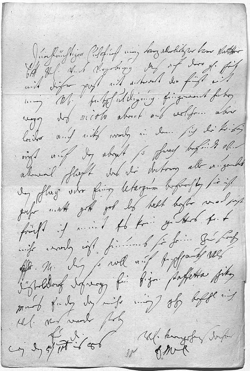 0001Durchleüchtiger cuhrfürst, mein herz allerliebster herr vatter 0002Bitt vnterdehnigst vmb vergebung, das auf dero gnädiges schreiben 0003mit diser post nit antwort. Der Fürst wirt 0004mein vnterdehnigste entschuldigung eingewent haben 0005wegen des nicolo abent, aus welchem aber 0006leider auch niks worden, in dem sich die Keiserin 0007iezt auf den abent so schwach befindt vnd 0008alleweil schlaft, das die doctoren alle augenblik 0009den schlag oder einen letargum beforchten. Sie ist 0010gahr matt, gott geb, das balt beßer werd, sonst 0011förcht ich, nimt es kein guttes ent. 0012Mihr werden iezt hinumb sie heim zue suechen. 0013Ihr Mayestät duen so woll auf Inschprukh als 0014Düßeldorf deswegen ein eigen staffetta schiken. 0015Mues enden, dan mihr müeßen gehn. Befehl mich 0016vnterdehnigst vnd werde sterben 0017ewer Durchlaucht 0018vnterdehnigste trewgehorsamste dochter 0019EMT 0020Wien den 5ten decembris 1686