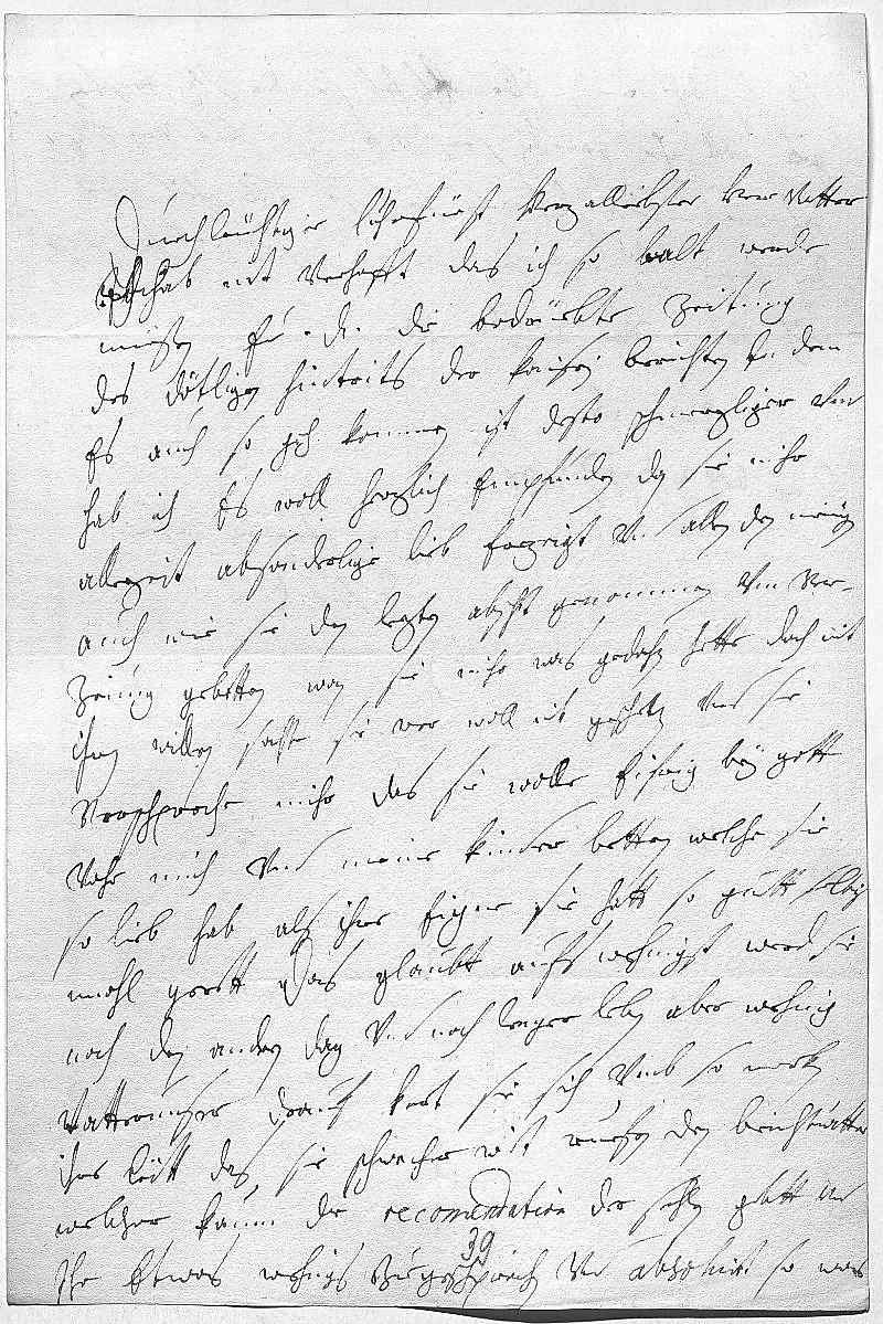 0001Durchleüchtiger Cuhrfürst, herzallerliebster herr vatter 0002Ich hab nit verhofft, das ich so balt werde 0003müeßen ewer Durchlaucht die bedrüebte zeitung 0004des dötligen hintrits der Kaiserin berichten. In dem 0005es auch so geh kommen, ist desto schmerzliger vnd 0006hab ich es woll herzlich empfunden, dan sie mihr 0007allezeit absonderlige lieb erzeigt vnd allen den meinigen. 0008Auch hat sie, wie sie den lezten abschit genommen, vm ver- 0009zeiung gebetten, wan sie mihr was gedahn hette, doch mit 0010ihren willen, sachte sie, wer woll nit geschehn, vnd sie 0011verschpreche mihr, das sie wolle eifrig bey gott 0012vohr mich vnd meine kinder betten, welche sie 0013so lieb hab als ihre eigne . Sie hatt so gutt selbig 0014mahl gerett, das glaubt habe, aufs wehnigst werd sie 0015noch den andren dag vnd noch lenger leben. Aber wehnig 0016vatterunser drauf kert sie sich vmb, so merken 0017ihre leütt, das sie schwecher wirt, ruefen den beichtvatter, 0018welcher kaum die recomendation der sehlen gebett vnd 0019ihr etwas wehnigs zuegeschprochen vnd absoluirt, so war