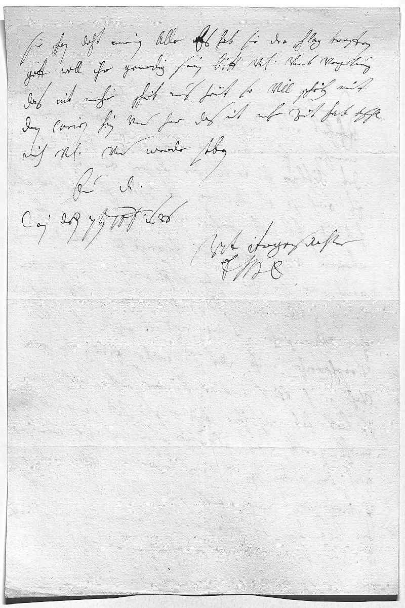 0020sie schon doht. Meinen alle, es hab sie der schlag troffen, 0021gott woll ihr genedig sein. Bitt vnterdehnigst vmb vergebung, 0022das nit mehr schreib, mus heüt so vill schreiben mit 0023den curiren hin vnd her, das nit mehr zeit hab. Befehl 0024mich vnterdehnigst vnd werde sterben 0025ewer Durchlaucht 0026vnterdehnigste trewgehorsamste dochter 0027EMT 0028Wien den 7ten decembris 1686