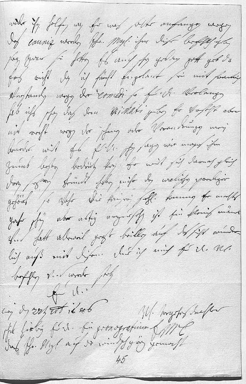 0040wider ihn helfen, wan er was solte anfangen. Wegen 0041des Cauniz werden ihr Mayestät ihm dise befehlh geben, 0042sagen zwar, sie hetten es auch schon gedan. Gott geb, das 0043ers richt, dan ich förcht, Engelant sei mit Frankreich 0044verstanden. Wegen der comedi, so ewer Durchlaucht verlangen, 0045hab ichs schon das dem Minati geben, er versteht aber 0046nit recht wegen der schemen oder verendrungen. Mein 0047brueder wirt es ewer Durchlaucht schon sagen, wie mans ihm 0048zumb besten bedeüten kan, er wirt sich darnach gleich 0049dran sezen. Heündt haben mihr den walischen prediger 0050gehört, so vohr die Kaiserin sehlig kommen. Er machts 0051gahr schön, ist aber artig anzuesehn, ist ein kleins mänel 0052vnd hatt alleweil große brillen auf, das sicht wunder- 0053lich auß. Mit disem due ich mich ewer Durchlaucht vnterdehnigst 0054befehlen vnd werde sterben 0055ewer Durchlaucht 0056vnterdehnigste trewgehorsamste dochter 0057EMT 0058Wien den 22ten decembris 16860059Schik hirbey ewer Durchlaucht ein gronogratium, 0060das ihr Mayestät auf die Windischgräz gemacht.