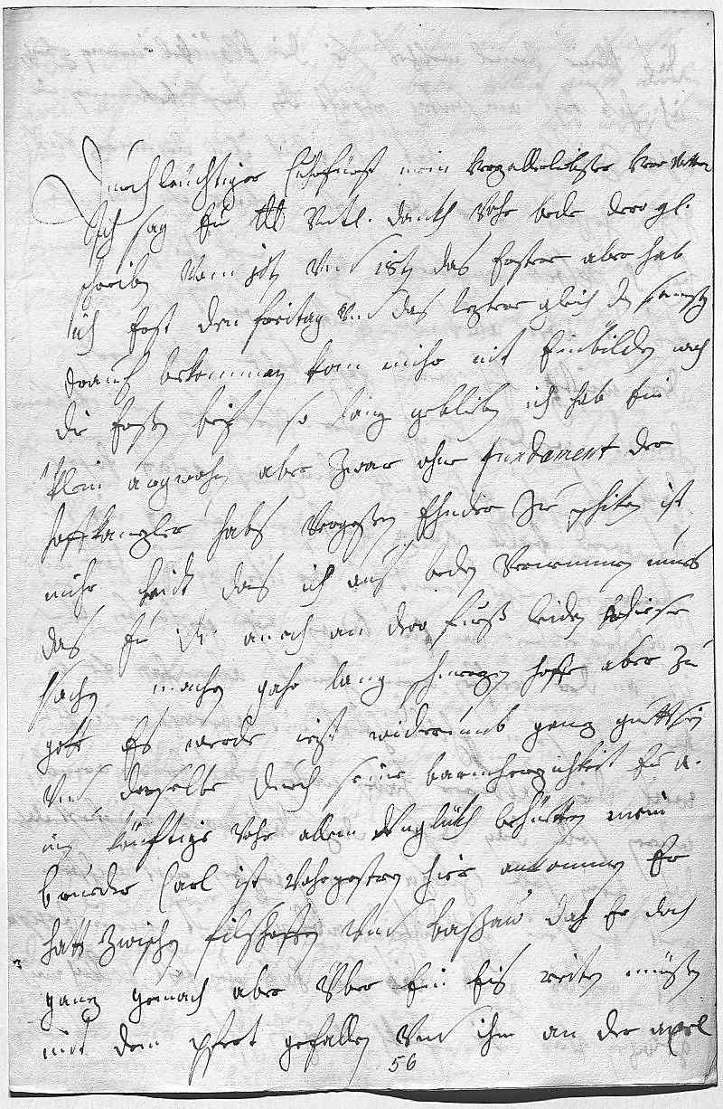 0001Durchleüchtiger Cuhrfürst, mein herzallerliebster herr vatter 0002Ich sag ewer Durchlaucht vnterdehnigsten dankh vohr bede dero gnädige 0003schreiben vom 10ten vnd 18ten. Das erstere aber hab 0004ich erst den freitag vnd das leztere gleich den samstag 0005drauf bekommen. Kan mihr nit einbilden, woh 0006die ersten brif so lang geblieben. Ich hab ein 0007klein argwohn, aber zwar ohne fundament, der 0008Hoffkanzler habs vergeßen ehnder zue schiken. Ist 0009mihr leidt, das ich aus beden vernemmen mues, 0010das ewer Durchlaucht anoch an dero fueß leiden. Diese 0011sachen machen gahr lang schmerzen, hoffe aber zu 0012gott, es werde iezt widerumb ganz guett sein 0013vnd derselbe durch seine barmherzichkeit ewer Durchlaucht 0014ins könftige vohr allem vnglückh behüetten. Mein 0015brueder Carl ist vohrgestren hier ankommen. Er 0016hatt zwischen Filshoffen vnd Baßaw, dah er doch 0017ganz gemach, aber über ein eis reiten müeßen, 0018mit dem pfert gefallen vnd ihm an der axel
