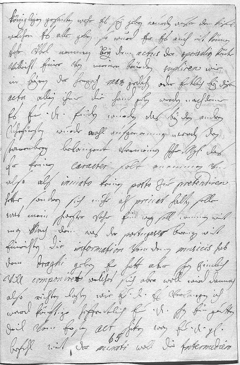 0059machen. Aber wie er die opera einricht, glaub 0060ich, so das gahr lang wirt werden vnd komen 0061so hin vnt her mit dem bufon ridicule 0062sachen hinein, so förcht ich, wan noch intermedien 0063darzue komen, wirt gahr zue lang werden. 0064Erwart aber weiters gnädigen befehl. Vohr die 0065saw lista sag vnterdehnigsten dankh. Ist mihr leid, 0066das wegen des fueß ewer Durchlaucht wehniger gefangen 0067haben. Due mich vnterdehnigst hirmit in ewer Durchlaucht 0068gnade befehlen vnd werde sterben 0069ewer Durchlaucht 0070vnterdehnigste trewgehorsamste dochter 0071EMT 0072Wien den 2ten merz 1687