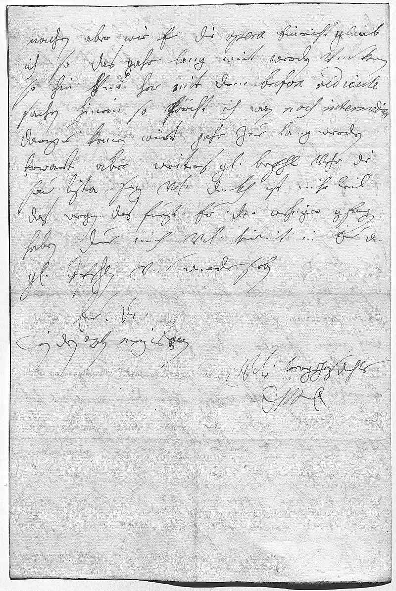 0018Die Mhißel ist auch wider woll auf, wahr nuhr ein 0019cattar. Die antwort an Papsten haben ihr Mayestät schon 0020an die höff publiciren laßen. Was ewer Durchlaucht weiters 0021gnädigst vohrschlagen wegen der sicherheit am Rein, werde ich 0022vom Stratman vernemmen. Bruder Carl wirt morgen sein 0023reis vortsezen. Das man entlich wegen seiner dem 0024Botschaffter sondiren will, mueß es aber sein, ohne 0025gahr zue großen empressement zue zeigen, sonst 0026wurd er sich niks trawen darwider zue sagen. 0027Wegen der handt mit ewer Durchlaucht werden ihr Mayestät, 0028wan sie können, selber schreiben. Wan sie aber nit 0029könten, haben ihr Mayestät mihr befohlen zue schreiben, das sie 0030vermeinen, das ewer Durchlaucht ihn tractiren sollen, wie 0031es bey den cuhrfürsten stilo ist, welches ihr Mayestät 0032nit gnuechsamb wißen, meinen doch, das es die 0033weltligen cuhrfürsten nit duen, einen die hant 0034zue geben, auser dem keiserligen. Also wan 0035sich ewer Durchlaucht mit dem entschuldigeten, das sie 0036es gern duen wolten, wan es ein andrer welt- 0037liger cuhrfürst duen wurde, es auch keiner andren