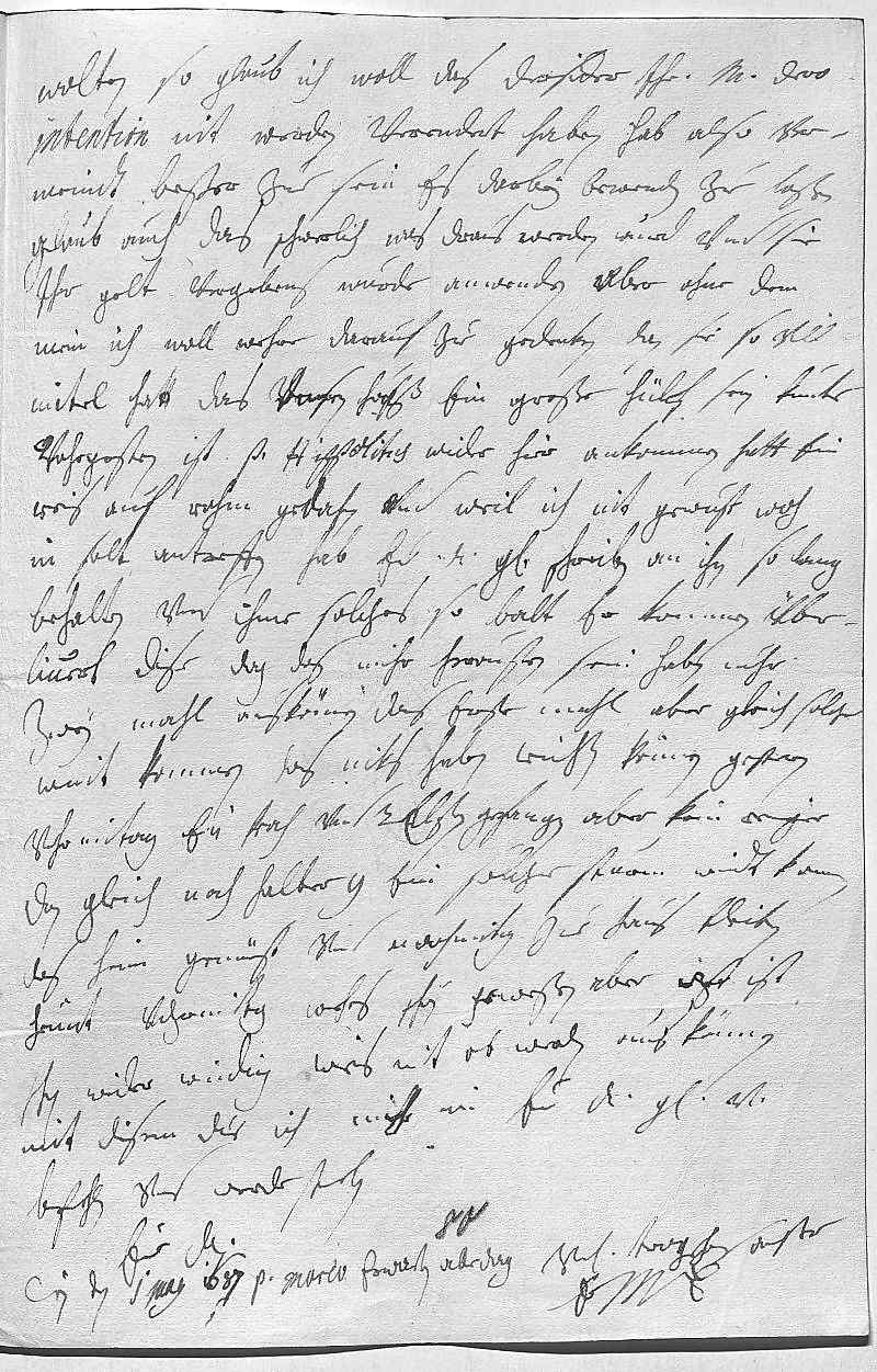 0044wolten, so glaub ich woll, das dersider ihr Mayestät dero 0045intention nit werden verendert haben. Hab also ver- 0046meindt beßer zue sein, es darbey bewenden zue laßen. 0047Glaub auch, das schwerlich was draus werden wurd vnd sie 0048ihr gelt vergebens wurde anwenden. Aber auch ohne dem, 0049mein ich woll, wehre darauf zue gedenken, dan sie so vill 0050mitel hatt, das vnsren hauß ein große hülf sein kunte. 0051Vohrgestern ist Pater Hippolitus wider hier ankommen, hatt ein 0052reis auf Rohm gedahn, vnd weil ich nit gewust, woh 0053in solt antreffen, hab ewer Durchlaucht gnädiges schreiben an ihn so lang 0054behalten, vnd ihme solches so balt er kommen über- 0055liuert. Dise dag, das mihr heraußen sein, haben nuhr 0056zwey mahl auskönnen, das erste mahl aber gleich solche 0057wint kommen, das niks haben richten können, gestern 0058vohrmitag ein krah vnd 2 elstern gefangen, aber kein reiger. 0059Dan gleich nach halber 9 ein solcher sturm windt kommen, 0060das heim gemüest vnd nachmitag zue haus bleiben. 0061Heünt vohrmitag wehrs schön geweßen, aber jezt ist 0062schon wider windig, weis nit, ob werden aus können. 0063Mit disem due ich mich in ewer Durchlaucht gnade vnterdehnigst 0064befehlen vnd werde sterben 0065ewer Durchlaucht 0066vnterdehnigste trewgehorsamste dochter 0067EMT 0068Wien den 1 maij 1687 Pater Marco erwarten alle dag.