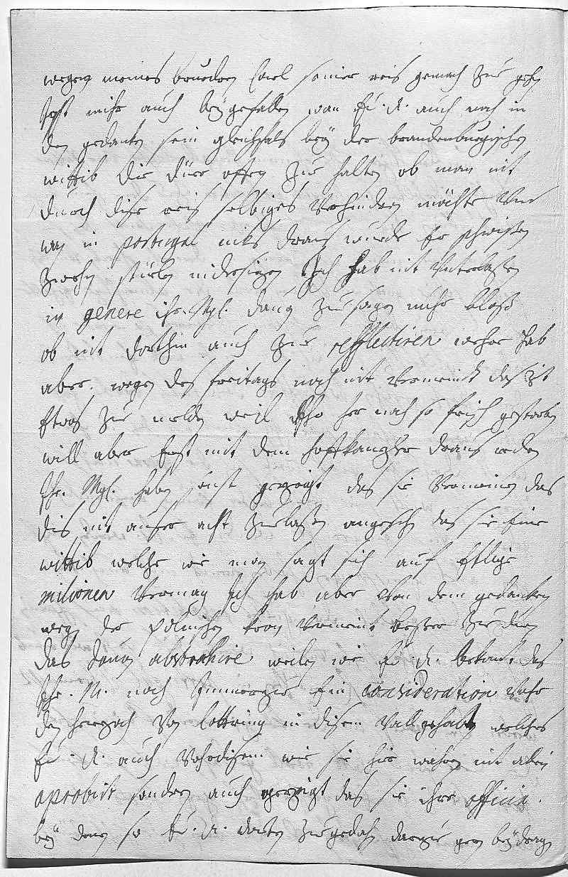 0021wegen meines bruedren Carl seiner reis gemach zue gehen. 0022Ist mihr auch beygefallen, wan ewer Durchlaucht auch noch in 0023den gedanken sein, gleichfals bey der brandenburgischen 0024wittib die düer offen zue halten, ob man nit 0025durch dise reis selbiges verhindren möchte, vnd 0026wan in Portugal niks draus wurde, würde er schwißen 0027zwehn stüelen nidersizen. Ich hab nit vnterlaßen, 0028in genere ihr Mayestät dauon zue sagen, nuhr bloß 0029ob nit dorthin auch zue refflectiren wehre. Hab 0030aber wegen des Freitags noch nit vermeindt, das zeit 0031etwas zue melden, weil ihr her noch so frisch gestorben, 0032will aber erst mit dem Hoffkanzler draus reden. 0033Ihr Mayestät haben sonst gezeigt, das sie vermeinen, das 0034das nit auser acht zuelaßen, angesehen, das sie eine 0035wittib, welche wie man sagt sich auf etlige 0036milionen vermag. Ich hab aber von dem gedanken 0037wegen der polnischen kron vermeint, beßer zue duen, 0038das dauon abstrahire, weilen, wie ewer Durchlaucht bekant, das 0039ihr Mayestät noch immerzue ein consideration vohr 0040den Herzoch von Lottring in disem vall gehabt, welches 0041ewer Durchlaucht auch vohrdisem, wie sie hier wahren, nit allein 0042aprobirt, sondren auch gezeigt, das sie ihre officia 0043bey denen, so ewer Durchlaucht dorten zue gedahn, darzue gern beydragen