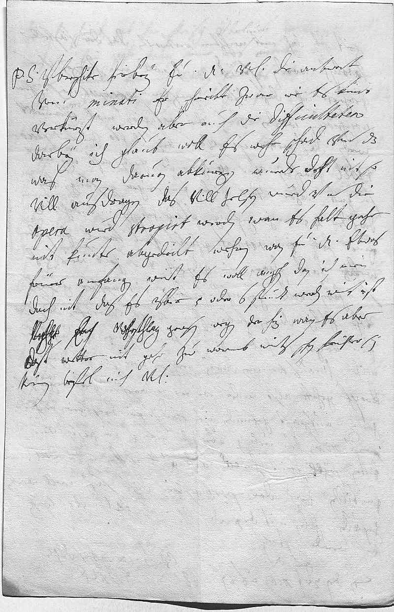0068Postscriptum Vberschike hierbey ewer Durchlaucht vnterdehnigst die antwort 0069vom Minati. Er schreibt zwar, wie es kundt 0070verkürzt werden, aber auch die difficulteten 0071darbey. Ich glaub woll, es wehr schad vnd das, 0072was man daruon abkürzen wurde, deht nit so 0073vill ausdragen, das vill helfen wurd, vnd die 0074opera wurd stropirt werden, wan es halt gahr 0075nit kunte abgedeilt wehren. Wan ewer Durchlaucht etwas 0076früer anfangen, wirt es woll angehen, dan ich mein 0077doch nit, das es über 5 oder 6 stundt werden wirt. Ist 0078nuhr ein vohrschlag gewesen wegen der hiz, wan es aber 0079das wetter nit gahr zu warmb, wirts schon leichter sein 0080können. Befel mich vnterdehnigst .