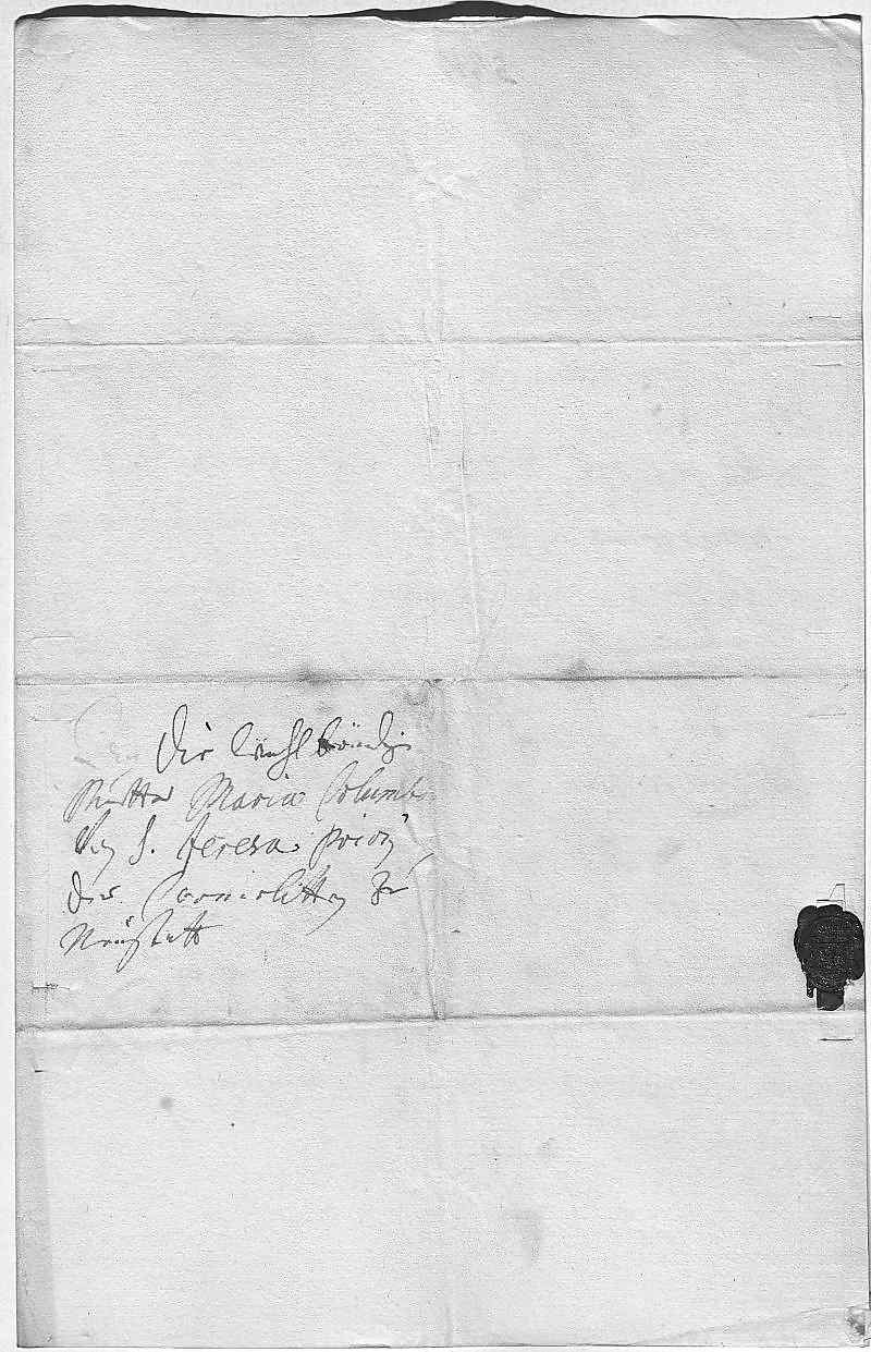 0022An die lenhl würdige 00231Mutter Maria Columba 0024von Sankt Teresa, Priorin 0025der Carmelitten zu 0026Neüstatt
