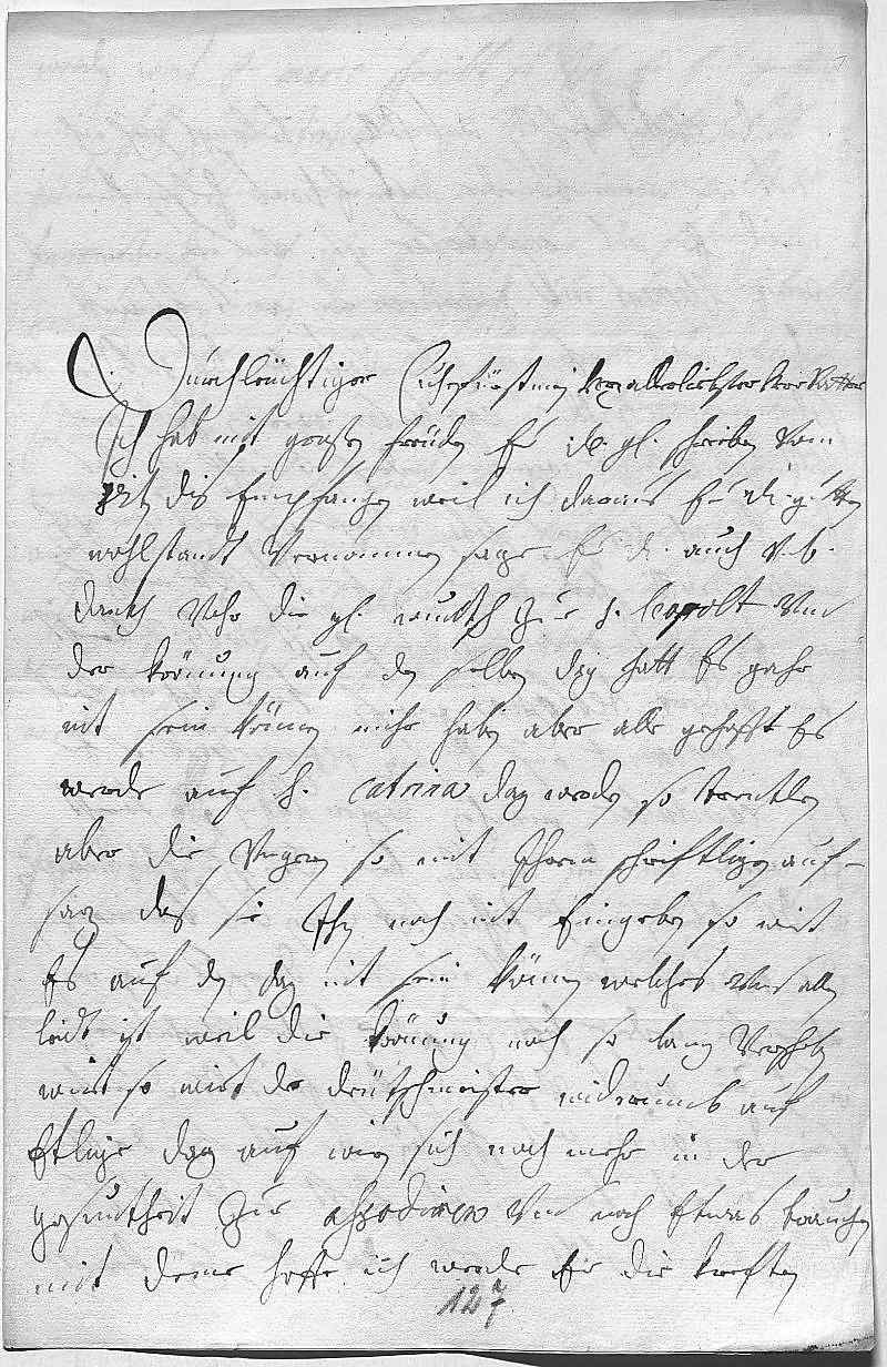 0001Durchleüchtiger Cuhrfürst, mein herzallerliebster herr vatter 0002Ich hab mit großen freüden ewer Durchlaucht gnädiges schreiben vom 000312ten dis empfangen, weil ich daraus ewer Durchlaucht gutten 0004wohlstandt vernommen. Sage ewer Durchlaucht auch vnterdehnigsten 0005dankh vohr die gnädigen wuntsch zue Sankt Leopolt vnd 0006der könung. Auf den selben dag hatt es gahr 0007nit sein können, mihr haben aber alle gehofft, es 0008werde auf Sankt Catrina dag werden, so trentlen 0009aber die vngern so mit ihrem schriftligen auf- 0010saz, das sie ihn noch nit eingeben, so wirt 0011es auf den dag nit sein können, welches vns allen 0012leidt ist. Weil die krönung noch so lang verschoben 0013wirt, so wirt der Deütschmeister widerumb auf 0014etlige dag auf Wien, sich noch mehr in der 0015gesuntheit zue assodiren vnd noch etwas brauchen, 0016mit deme, hoffe ich, werde er die kreften