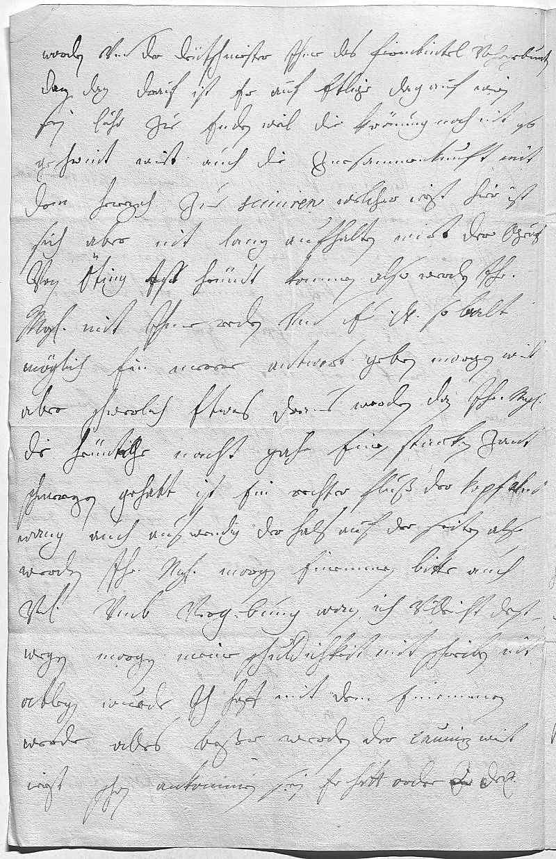 0001Durchleüchtiger Cuhrfürst, mein herzallerliebster herr vatter 0002Ich bin neülich zue schpaht zum schreiben kommen, hab 0003vermeint, sey noch fruer, vnd darnach ist noch 0004der Herzoch von Lottring kommen, mit dem ist 0005zue schpaht worden. Ich hoff doch, es werde 0006diser brief noch mit der post ankommen, 0007weil ein curir mit den schpanischen briefen 0008nachgeschikt wirt. Erfreüet mich wohl von 0009herzen, das ewer Durchlaucht sich in so guttem wohlstandt 0010befinden, welches ich mit vnterdehnigstem respect aus dero 0011gnädigem schreiben vom 15ten dis vernommen, der almechtig 0012gebe weiters sein gnad. Sag ewer Durchlaucht nochmahl 0013vnterdehnigsten dankh vohr die gnädigen wuntsch zue Sankt Leopolt 0014vndt der krönung. Es duet sich noch als 0015von dag zue dag auf zien, wie es die vngern 0016pflegen. Auf ewer Durchlaucht glükhsehligen geburz dag, zue welchem 0017ich nochmahlen vnterdehnigst gratulire, ist der Josephl gefirmbt