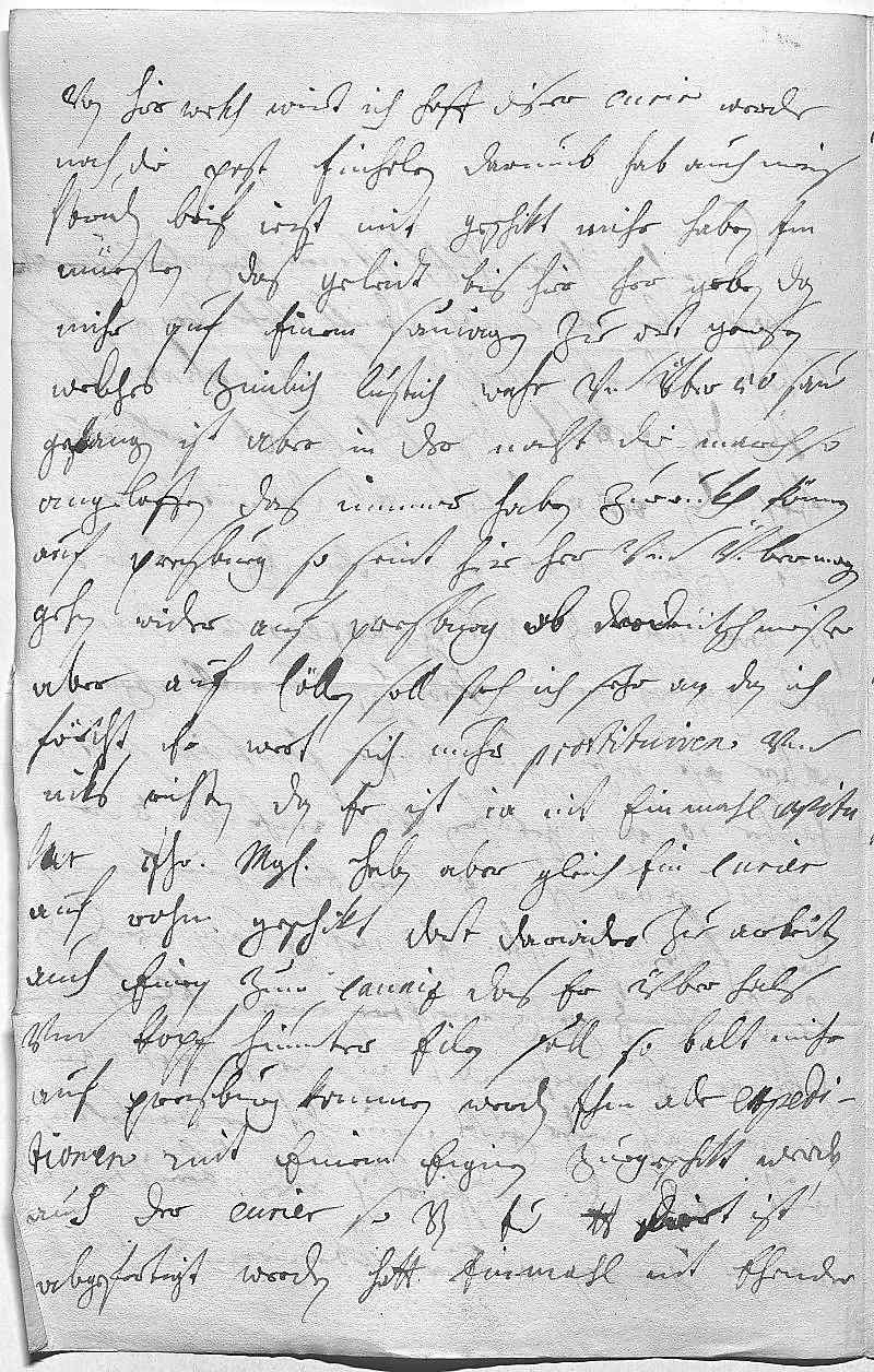 0018von hier wekh wirt. Ich hoff, diser curir werde 0019noch die post einholen, darumb hab auch meins 0020herrn brudern brif iezt mit geschikt. Mihr haben im 0021müeßen das geleidt bis hier her geben, dan 0022mihr auf einem sauiagen zue Ort gewesen, 0023welches zimlich lustich wahr vnd haben über 50 saw 0024gefangen. Ist aber in der nacht die March so 0025angeloffen, das nimmer haben zuerukh können 0026auf Presburg, so seint hir her vnd übermorgen 0027gehen wider auf Presburg. Ob der Deütschmeister 0028aber auf Cöllen soll, steh ich sehr an, dan ich 0029förcht, er wert sich nuhr prostituiren vnd 0030niks richten, dan er ist ia nit einmahl capitu- 0031lar. Ihr Mayestät haben aber gleich ein curier 0032auf Rohm geschikt, dort darwider zue arbeiten, 0033auch einen zum Cauniz, das er über hals 0034vnd kopf hinunter eilen soll. So balt mihr 0035auf Presburg kommen, werden ihm alle expedi- 0036tionen mit einem eignen zuegeschikt werden, 0037auch der curier, so von ewer Liebden hier ist, 0038abgefertigt werden, hatt einmahl nit ehender