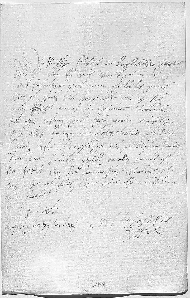 0001Durchleüchtiger Cuhrfürst, mein herzallerliebster herr vatter 0002Ewer Durchlaucht bitte ich vnterdehnigst vom vergebung, das ich 0003mit heüntiger post mein schuldikeit gemes 0004dero gnädiges schreiben nit beantworte, weil ihr Mayestät, 0005mein Keiser, annoch im zimmer verblieben, 0006hatt es wehnig zeit geben, werde könftige 0007post alles ersezen. Die credantialien hatt der 0008Cauniz alle empfangen, mit selbigem curir 0009seint grad hinunter geschikt worden. Heindt ist 0010der fatale dag, der almechtige verleye gnädigst, 0011das möge auschlagen zue seiner ehr. Mueß enden 0012vnd sterbe 0013ewer Durchlaucht 0014vnterdehnigste trewgehorsamste dochter 0015EMT 0016Presburg den 7ten jener 1688