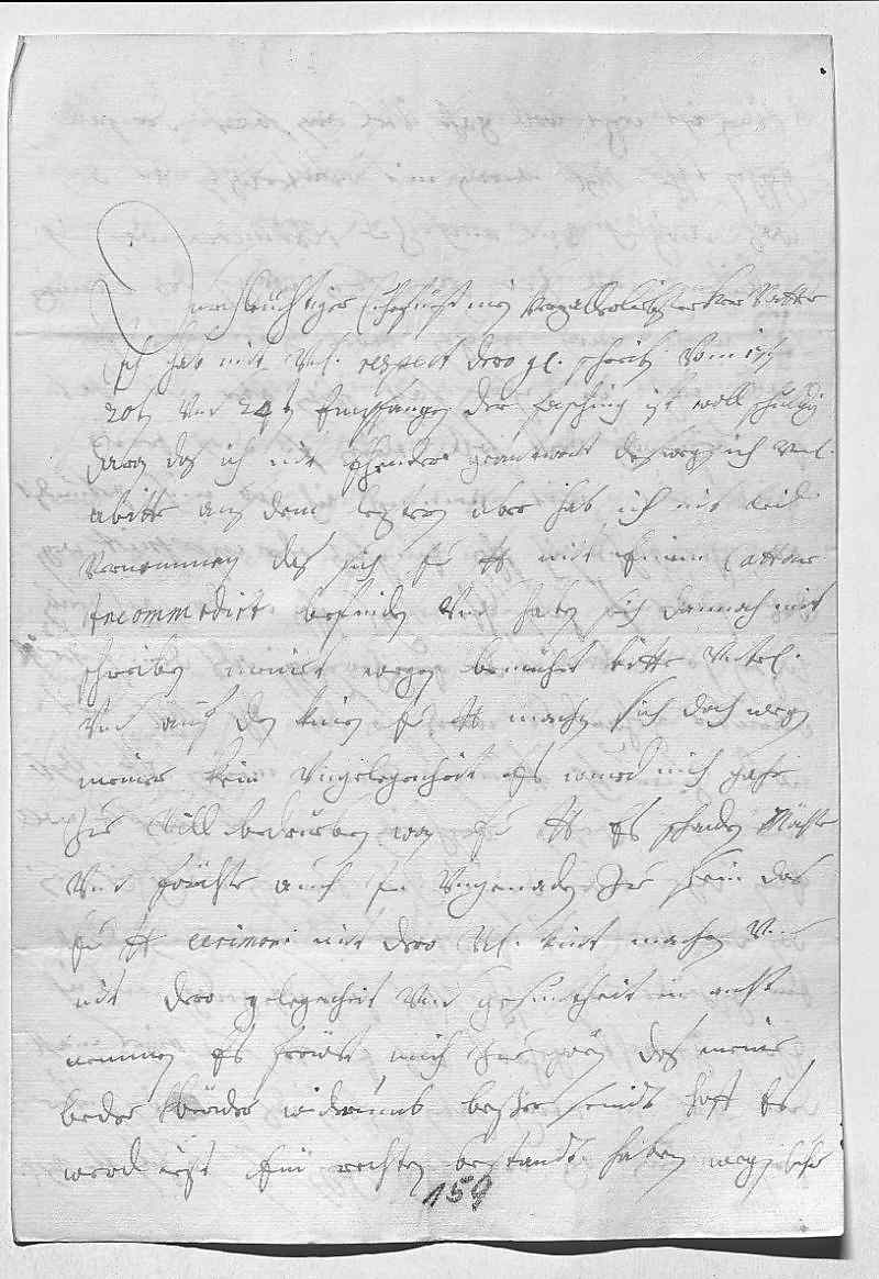 0001Durchleüchtiger Cuhrfürst, mein herzallerliebster herr vatter 0002Ich hab mit vnterdehnigstem respect dero gnädige schreiben vom 17ten, 000320ten vnd 24ten empfangen. Der fasching ist woll schuldig 0004daran, das ich nit ehender geantwort, deswegen ich vnterdehnigst 0005abitte. Aus dem leztern aber hab ich mit leid 0006vernommen, das sich ewer Durchlaucht mit einem cattar 0007incommodirt befinden, vnd haben sich dannoch mit 0008schreiben meinet wegen bemühet. Bitte vnterdehnigst 0009vnd auf den knien, ewer Durchlaucht machen sich doch wegen 0010meiner kein vngelegenheit, es wurd mich gahr 0011zue vill bedrüeben, wan ewer Durchlaucht es schaden möchte, 0012vnd förchte auch in vngenaden zue sein, das 0013ewer Durchlaucht cerimori mit dero vnterdehnigstem kint machen vnd 0014nit dero gelegenheit vnd gesuntheit in acht 0015nemmen. Es freüt mich zue hören, das meine 0016bede brüeder widerumb beßer seindt, hoff, es 0017werd iezt ein rechten bestandt haben. Wegen Cuhr