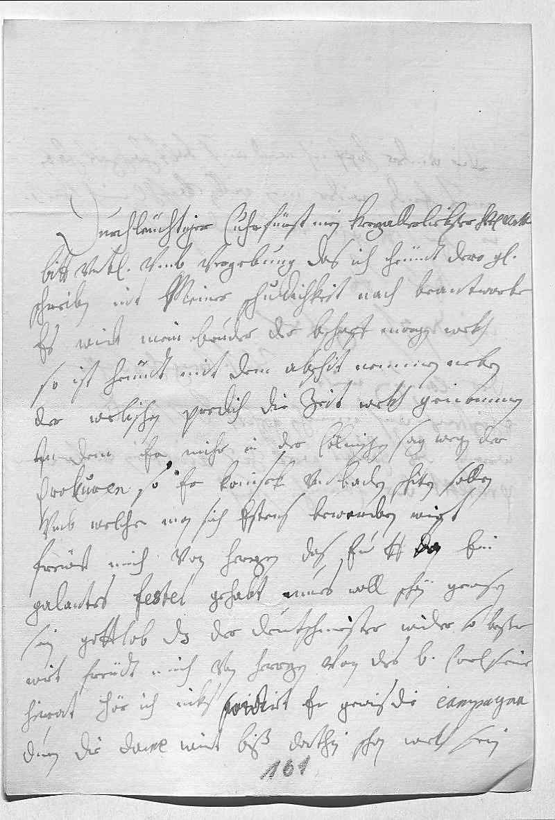 0001Durchleüchtiger Cuhrfürst, mein herzallerliebster herr vatter 0002Bitt vnterdehnigst vmb vergebung, das ich heündt dero gnädiges 0003schreiben nit meiner schuldichkeit nach beantworte. 0004Es wirt mein bruder, der Bischoff, morgen wekh, 0005so ist heündt mit dem abschit nemmen neben 0006der welischen predich die zeit wekh genommen, 0007in dem er mihr in der cölnischen sag wegen der 0008prokuren, so er Konisek vnd Baden schiken sollen, gesagt hat,0009vmb welche man sich erstens bewerben wirt. 0010Frewet mich von herzen, das ewer Durchlaucht da ein 0011galantes festel gehabt, mues woll schön gewesen 0012sein. Gottlob, das der Deutschmeister wider so beßer 0013wirt, freüdt mich von herzen. Von des bruder Carl seiner 0014heirat hör ich niks, sowirt er gewis die campagna 0015duen, die dame wirt biß dorthin schon wekh sein.