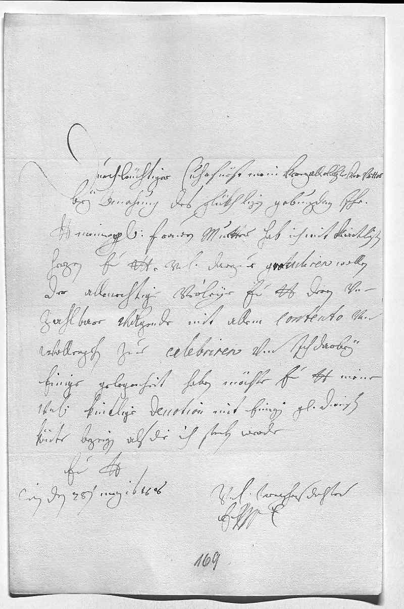 0001Durchleüchtiger Cuhrfürst, mein herzallerliebster herr vatter 0002Bey anahung des glükhligen geburzdag ihr 0003Durchlaucht, meiner geliebsten frawen muetter, hab ich mit kintlisten 0004herzen ewer Durchlaucht vnterdehnigst darzue gratuliren wollen. 0005Der allmechtige verleye ewer Durchlaucht deren vn- 0006zahlbare volgende mit allem contento vnd 0007wollergehn zue celebriren, vnd dass ich darbey 0008einige gelegenheit haben möchte, dass ich ewer euer Durchlaucht meine 0009vnterdehnigste kintlige deuotion mit einigen gehorsamsten diensten 0010könte bezeigen, als die ich sterben werde 0011ewer Durchlaucht 0012vnterdehnigste trewgehorsamste dochter 0013EMT 0014Wien den 28ten merz 1688